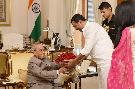 | Caption: | The President of India, Shri Pranab Mukherjee meeting with Shri Nishikant Dubey, MP (LS) alongwith his wife Smt. Anamika Gautam, at Rashtrapati Bhavan on October 14, 2016. |