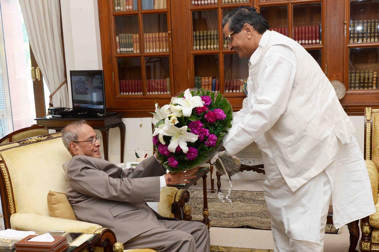 | Caption: | The President of India, Shri Pranab Mukherjee meeting with Shri R.K. Sinha, MP (RS), at Rashtrapati Bhavan on October 14, 2016. |