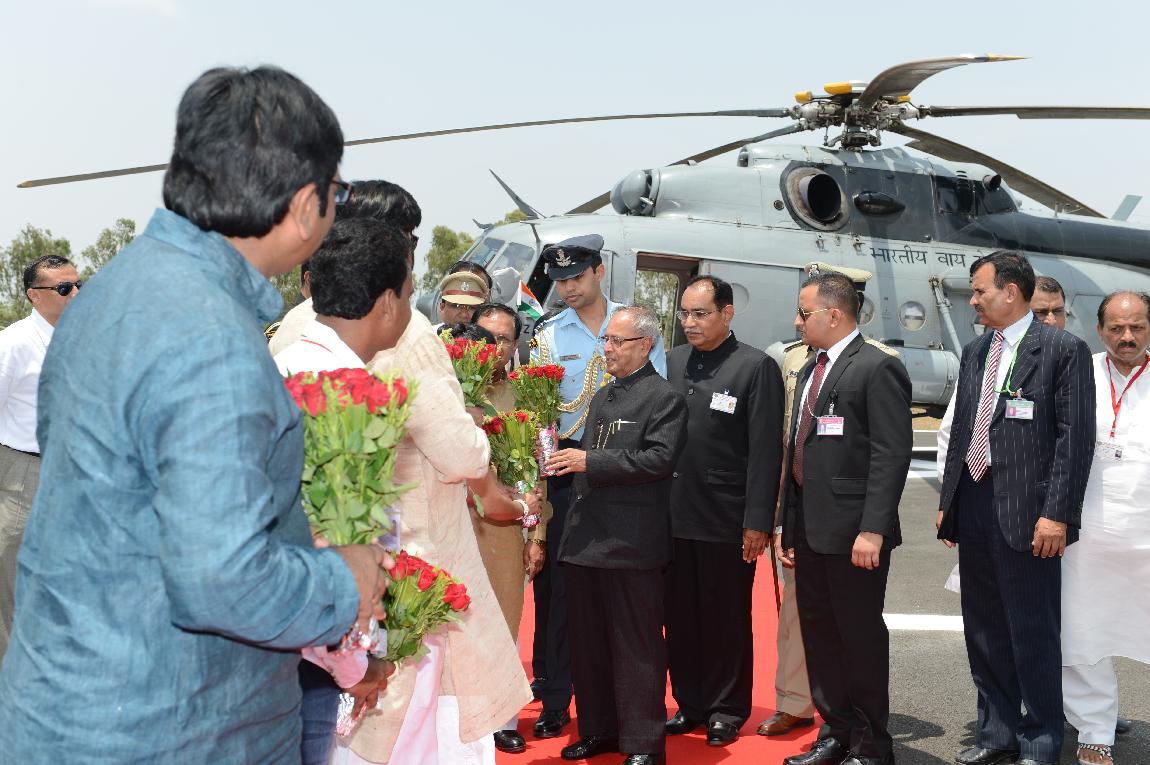 The President of India Shri Pranab Mukherjee Arrival at Ujjain Police Line Helipad on 8 June 2013