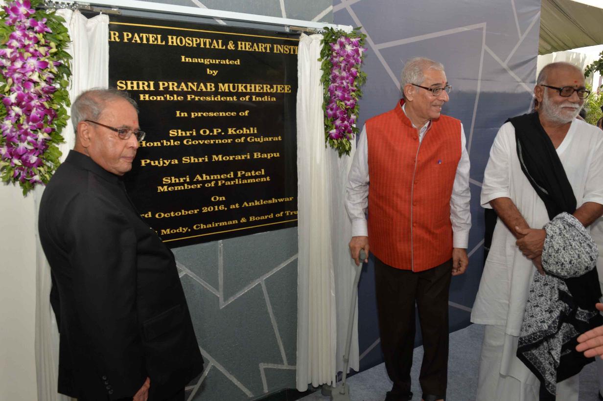 | Caption: | The President of India, Shri Pranab Mukherjee inaugurating the Sardar Vallabhbhai Patel Heart Institute, at Ankleshwar, in Gujarat on October 23, 2016. |