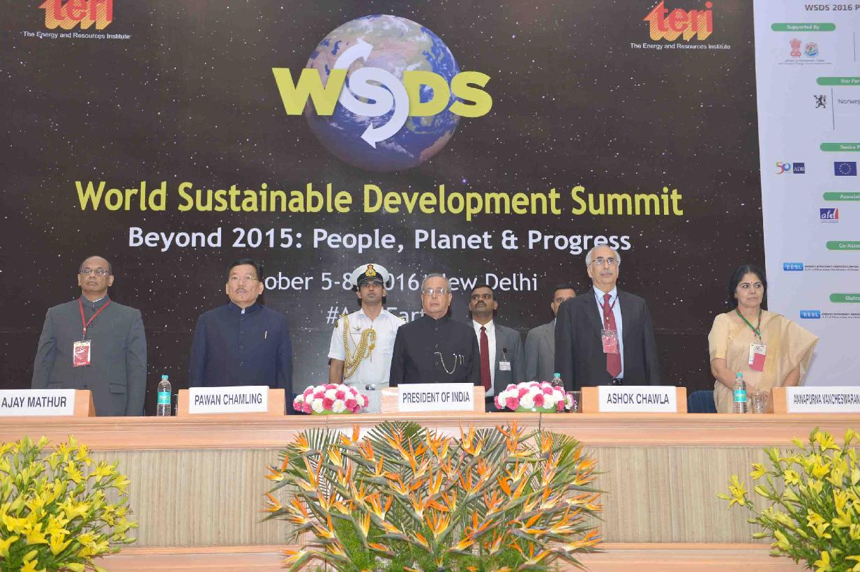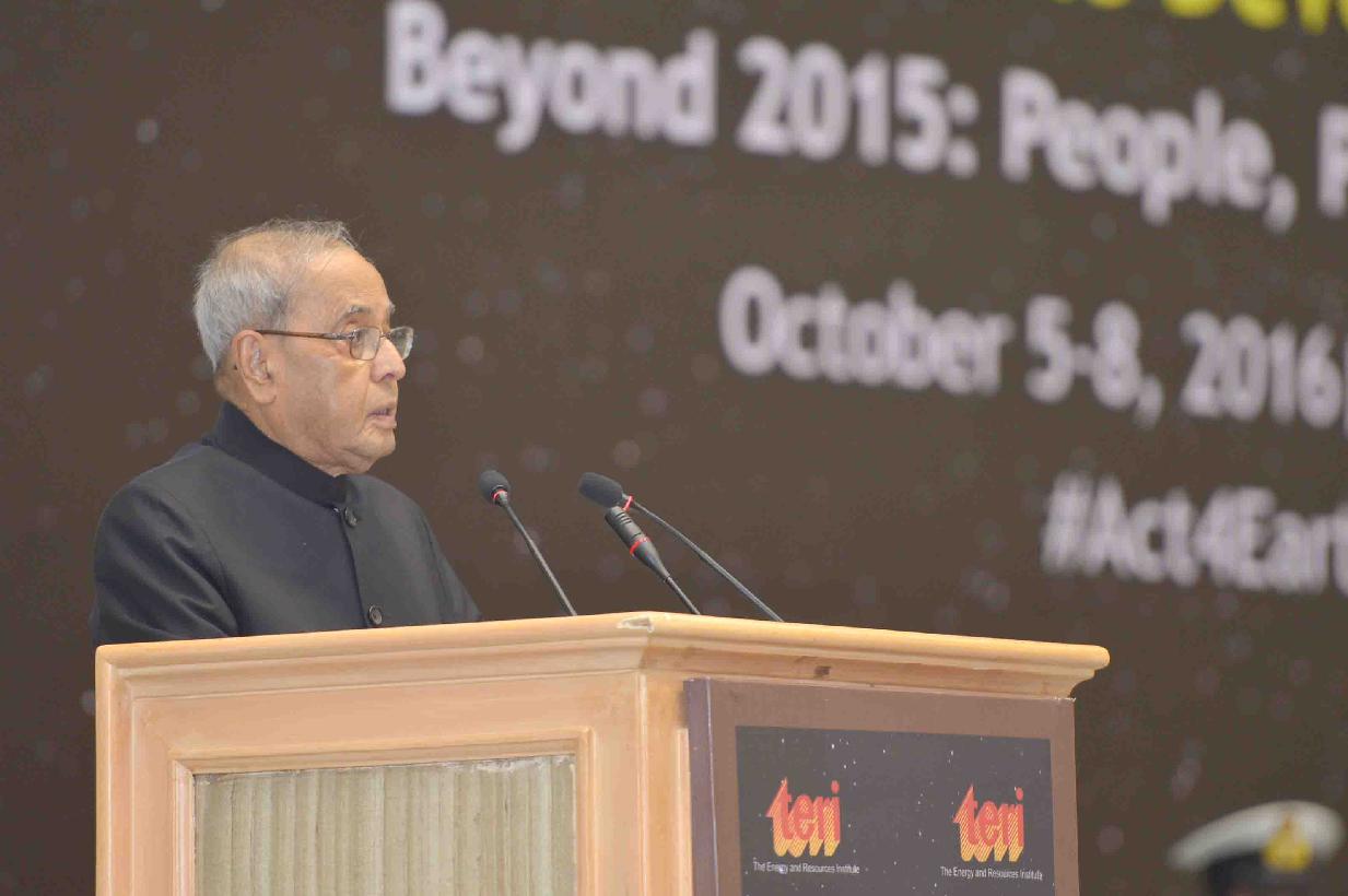 | Caption: | The President of India, Shri Pranab Mukherjee inaugurating the first edition of World Sustainable Summit on the theme "Beyond 2015 : People, Planet and Progress" organized by The Energy and Resources Institute (TERI), at Vigyan Bhavan, in New Delhi on October 06, 2016. |