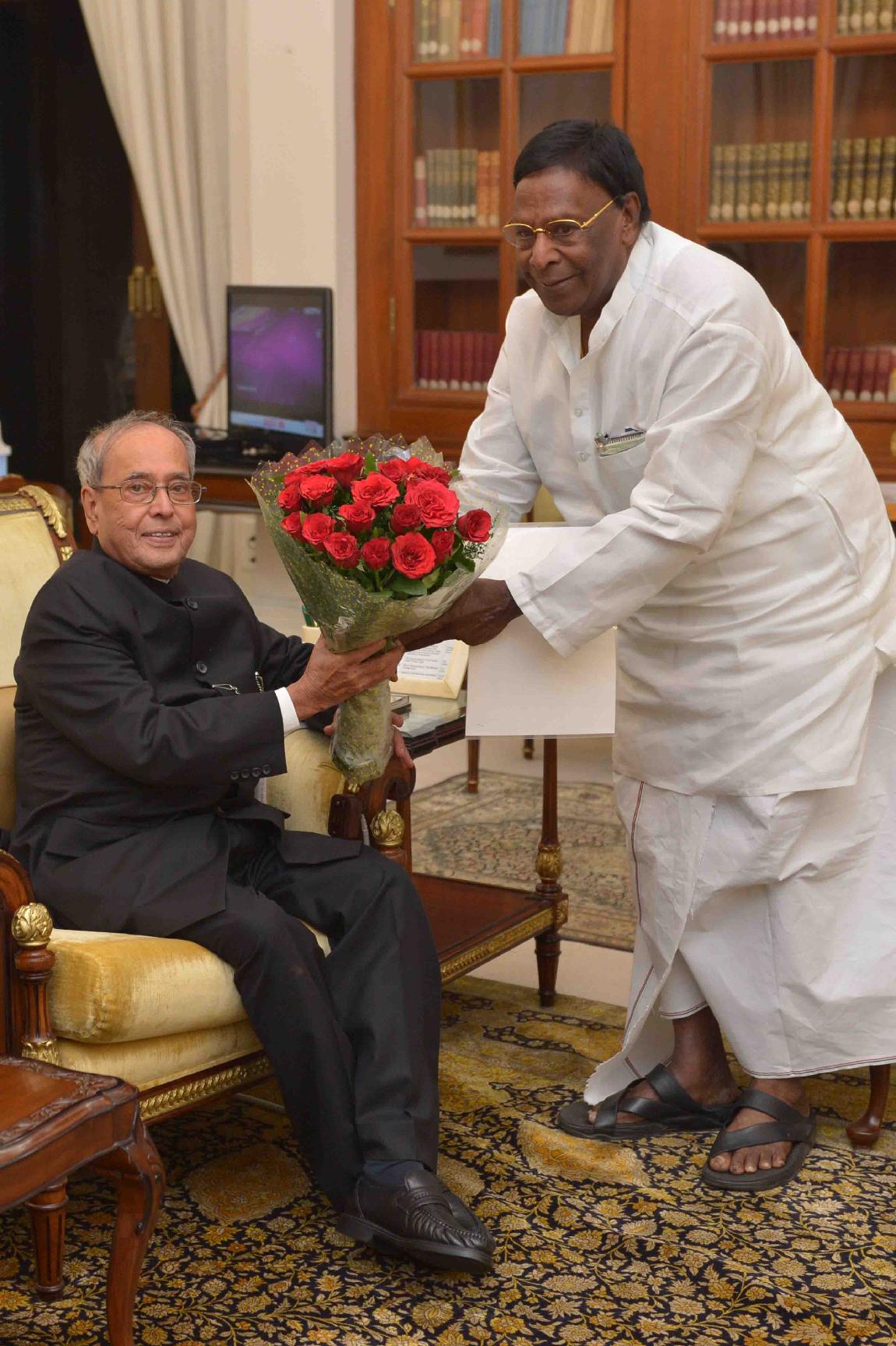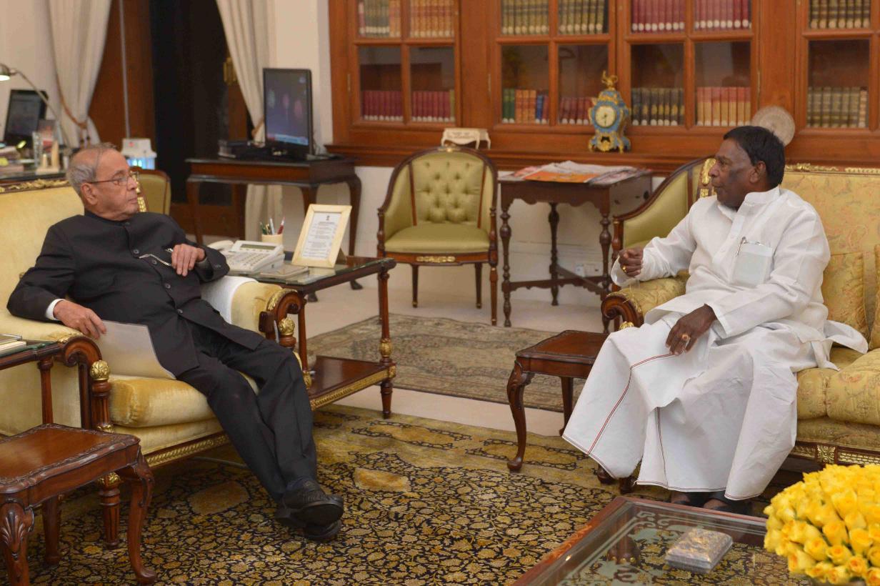 | Caption: | The President of India, Shri Pranab Mukherjee meeting with the Chief Minister of Puducherry, Shri V. Narayanasamy, at Rashtrapati Bhavan on October 19, 2016. |