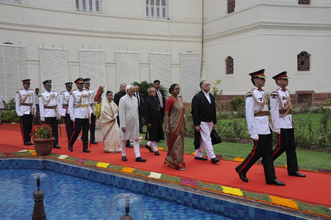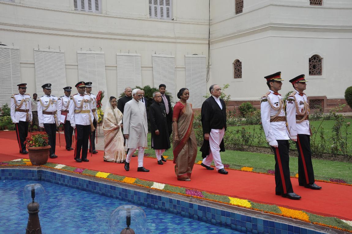 | Caption: | The President of India, Smt Pratibha Patil and The Elect President, Shri Pranab Mukherjee arriving at Parliament for Swearing-in-Ceremony on July 25, 2012 |