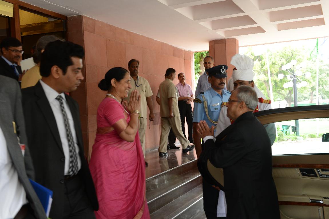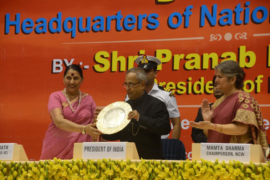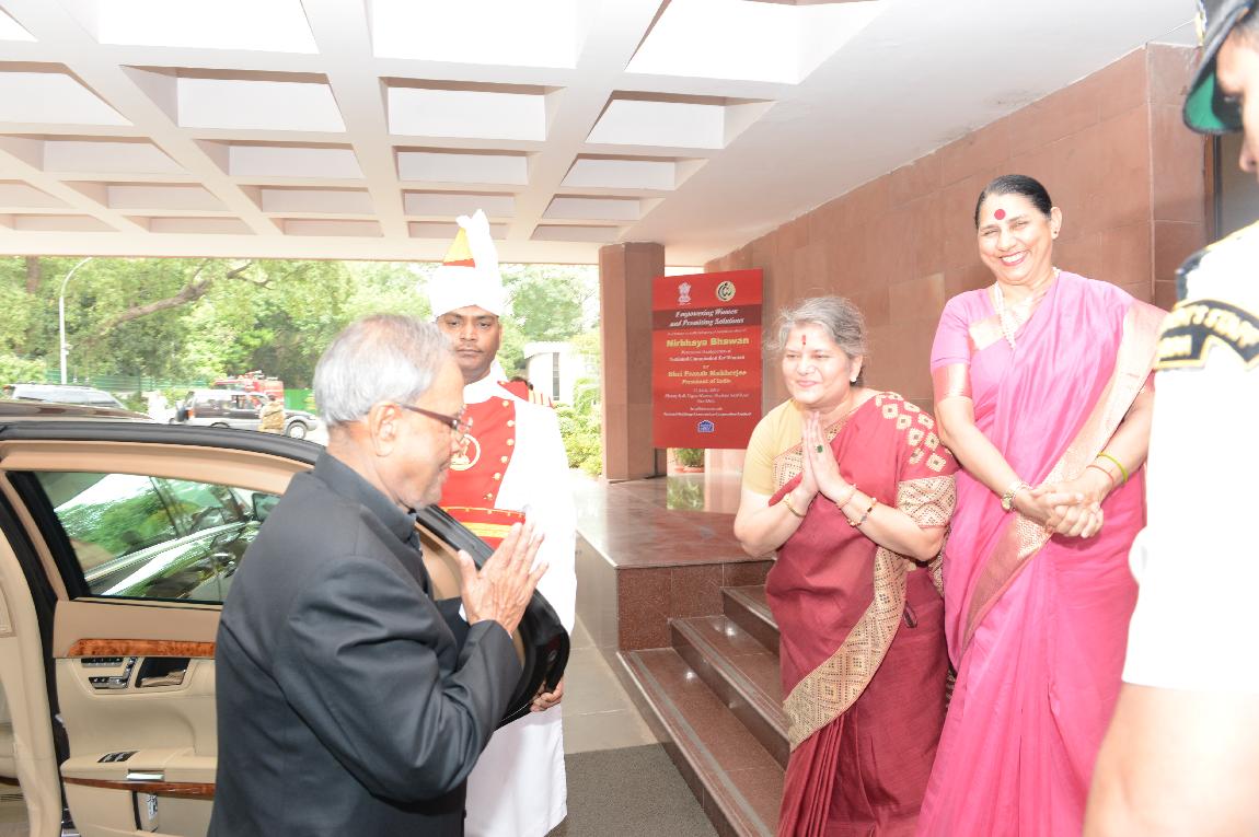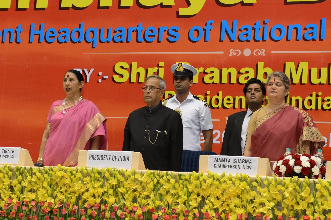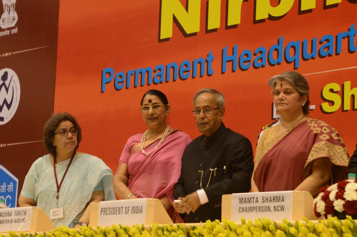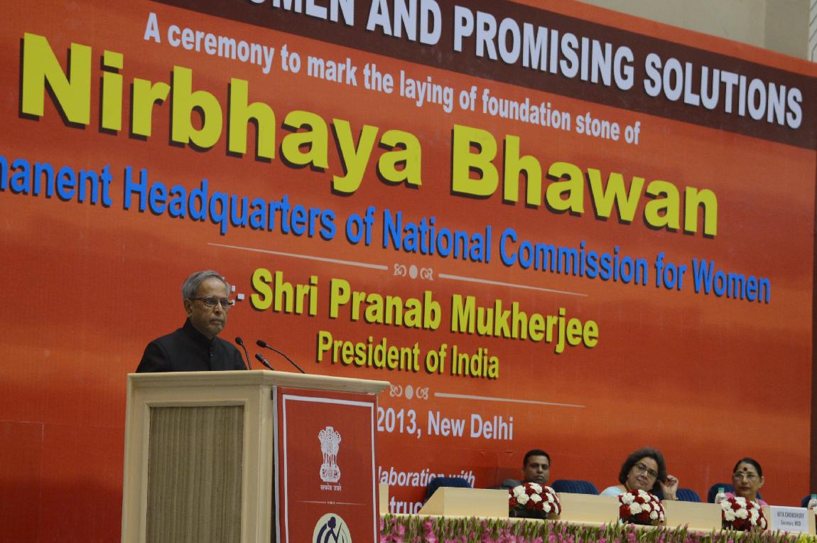 | Caption: | The President of India Shri Pranab Mukherjee at Lay Foundation Stone Nirbhaya Bhavan New Building National Commission for Women on 11 June 2013 |