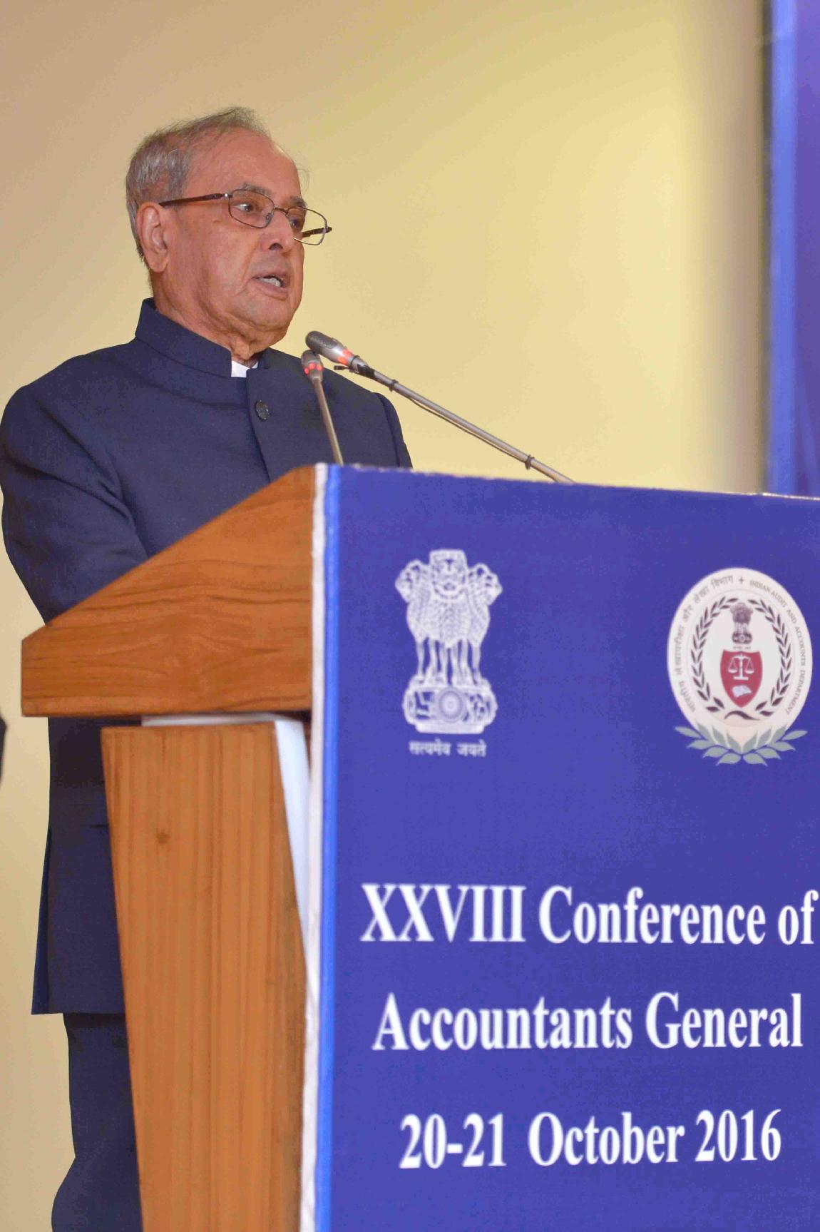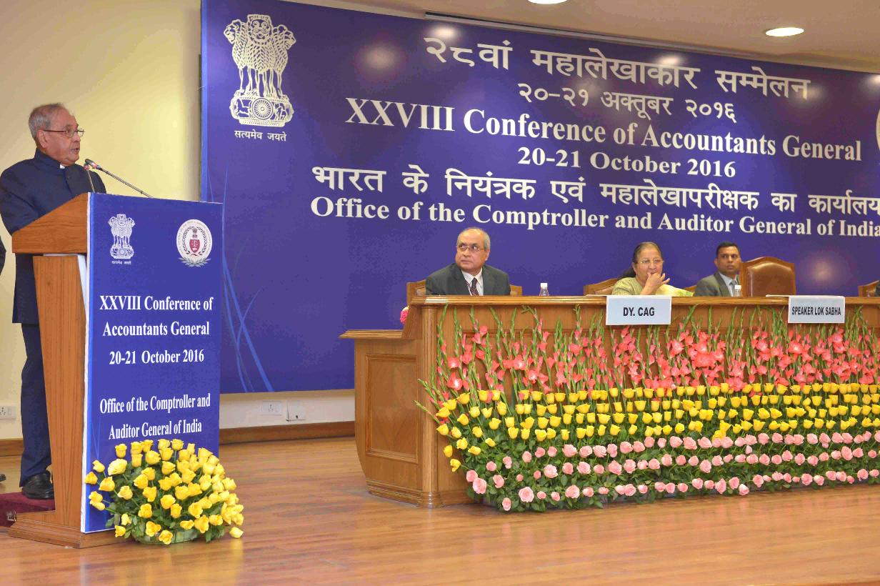 | Caption: | The President of India, Shri Pranab Mukherjee addressing the 28th Accountants General Conference, in New Delhi on October 20, 2016. |