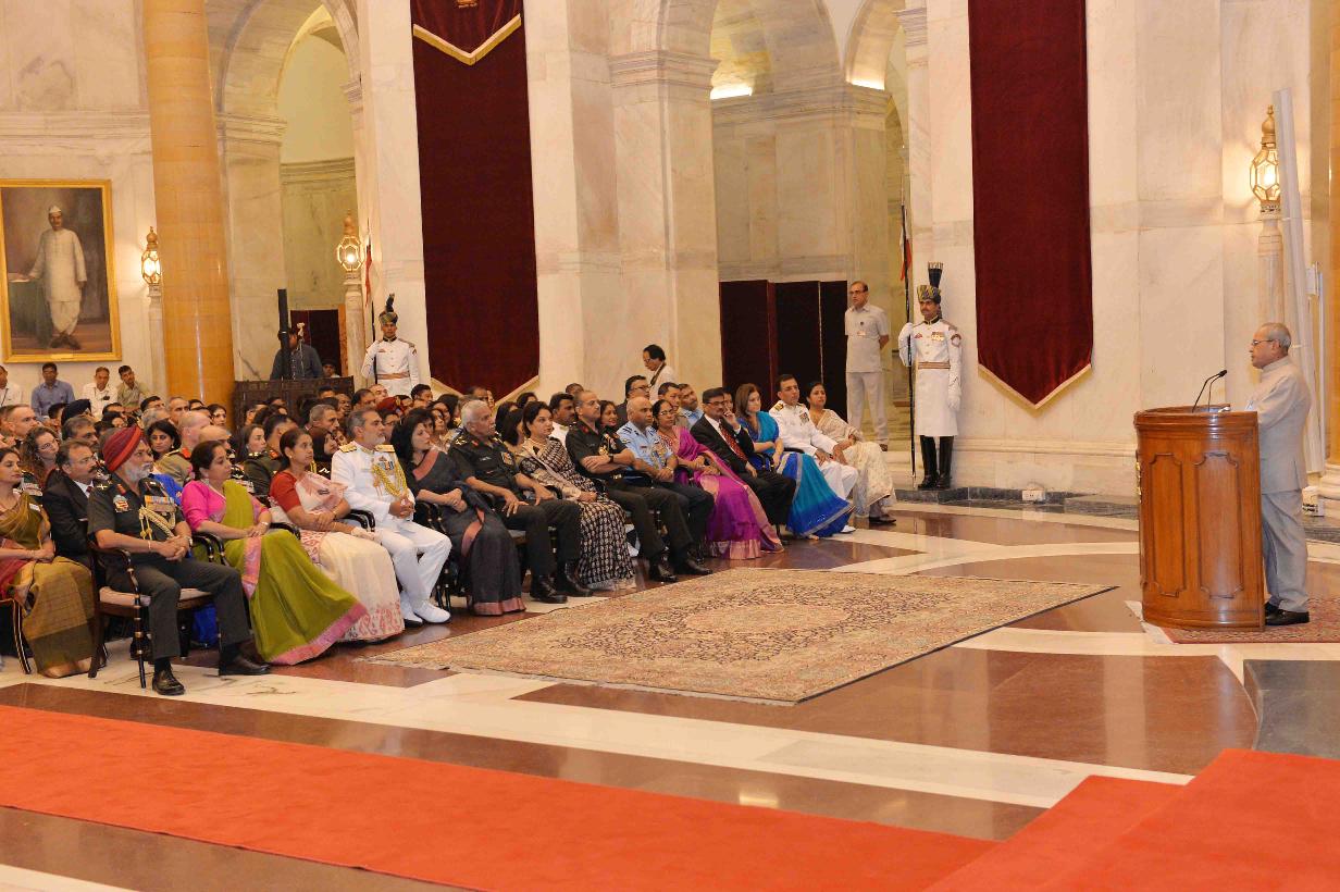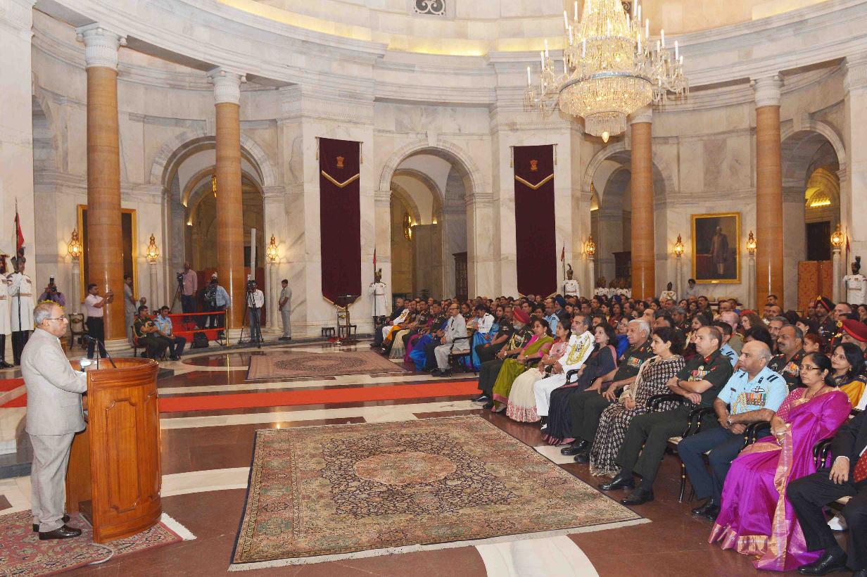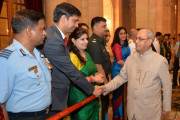| Caption: | The President of India, Shri Pranab Mukherjee meeting with the members of 56th NDC Course and faculty of National Defence College alongwith their spouses, at Rashtrapati Bhavan on November 01, 2016. |