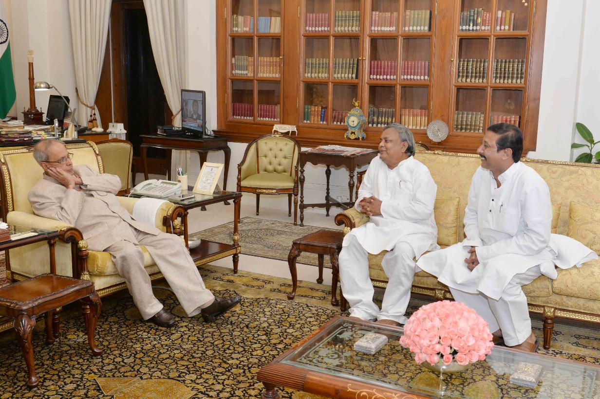 | Caption: | The President of India, Shri Pranab Mukherjee meeting with Shri Nepal Mahata, MLA and Shri Sudip Mukherjee, MLA From Purulia, at Rashtrapati Bhavan on October 24, 2016. |