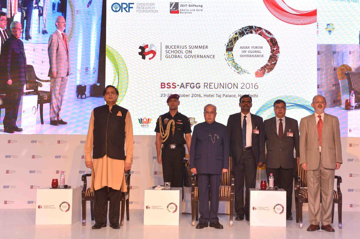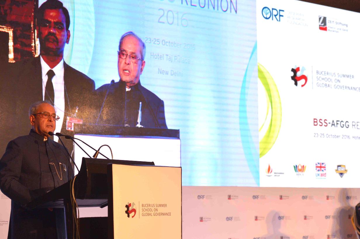 | Caption: | The President of India, Shri Pranab Mukherjee addressing the Reunion Meeting of the Asian Forum on Global Governance and the Bucerius Summer School on Global Governance, in New Delhi on October 25, 2016. |