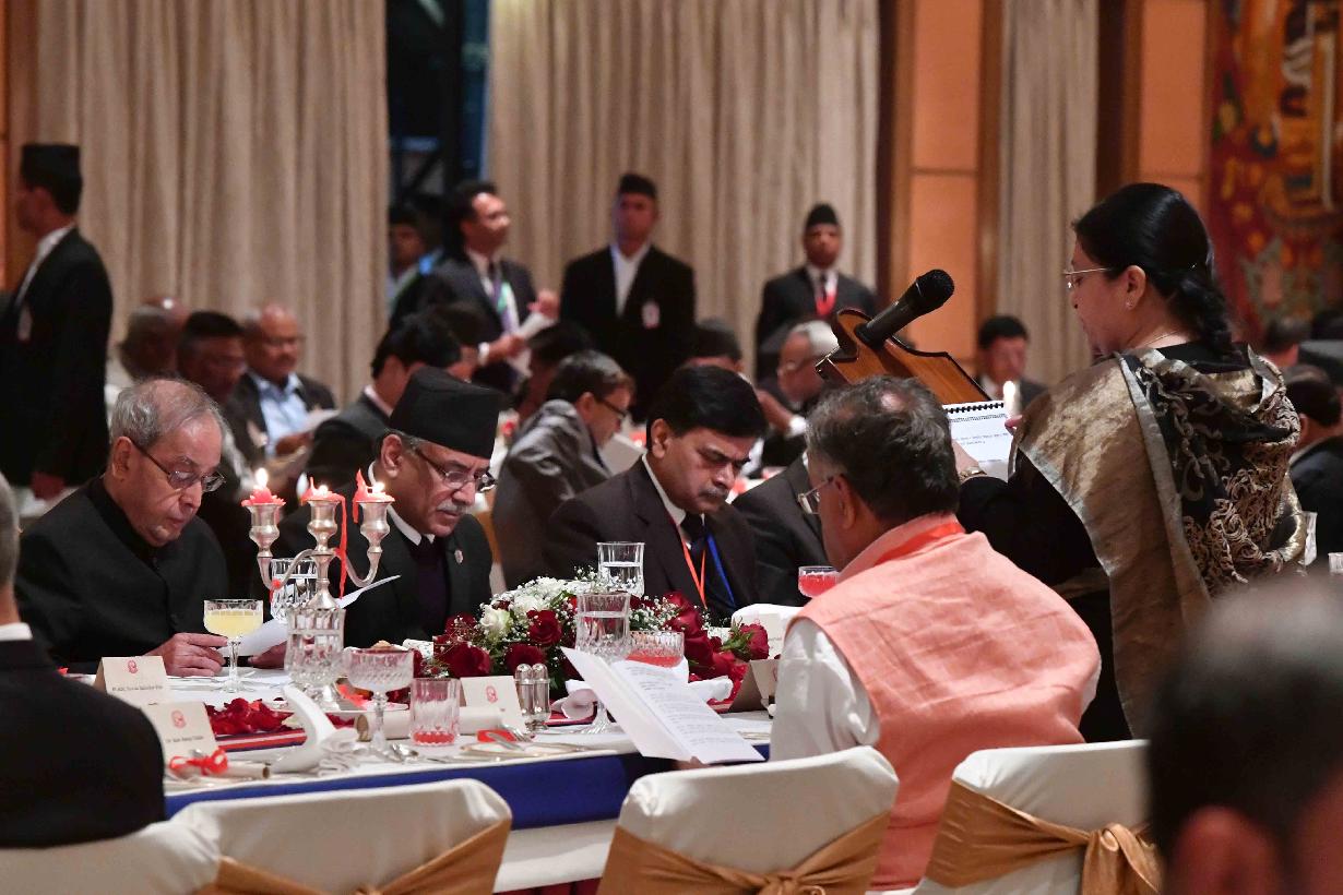 | Caption: | The President of India, Shri Pranab Mukherjee addressing at the Banquet, hosted by the President of Nepal, H.E. Ms. Bidya Devi Bhandari, at Kathmandu, in Nepal on November 02, 2016. |