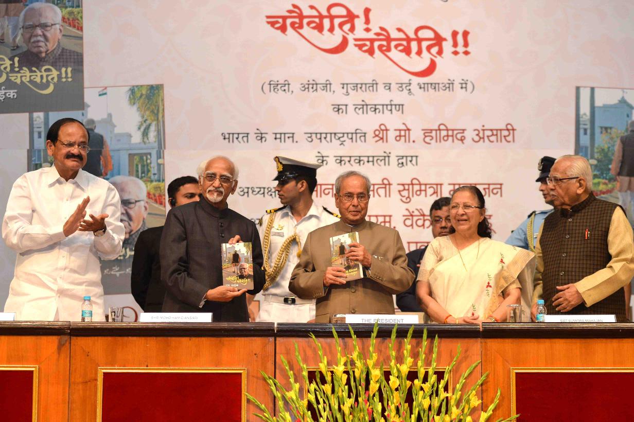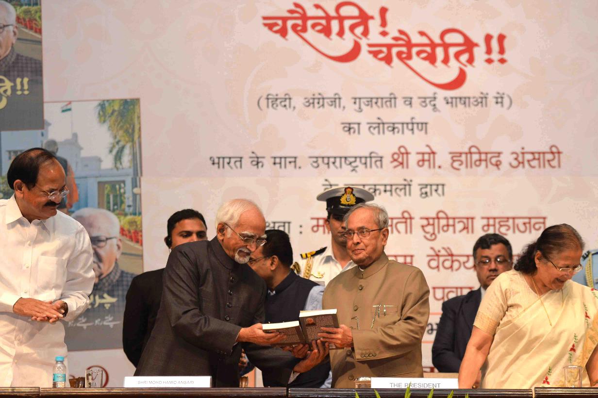| Caption: | The Vice President of India, Shri Mohd Hamid Ansari releasing the book CHARAIVETI, CHARAIVETI written by Shri Ram Naik, Governor of Uttar Pradesh and presenting the first copy to the President of India, Shri Pranab Mukherjee, at Rashtrapati Bhavan Cultural Centre on November 09, 2016. |