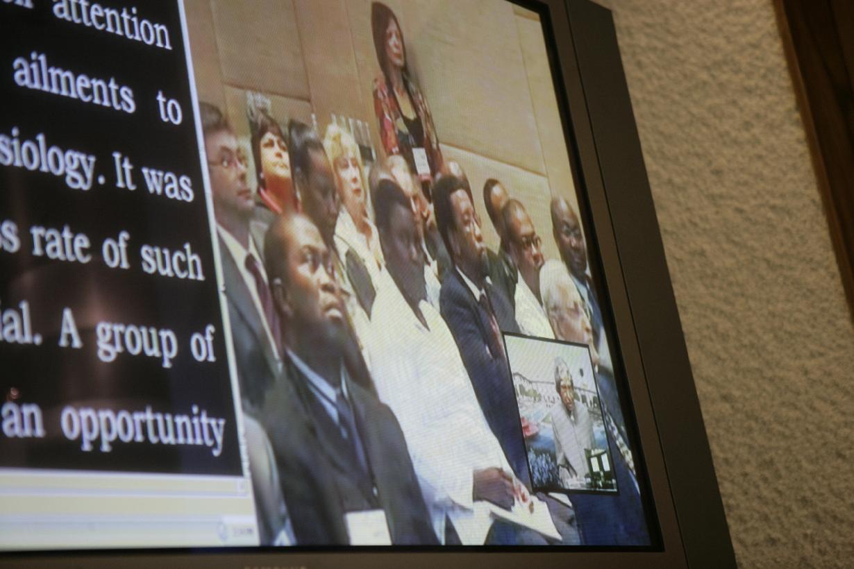 | Caption: | The President of India, Dr A P J Abdul Kalam delivering the Philip Tobias Lecture at Johannesburg through Video Conferencing at the Multi Media Studio of Rashtrapati Bhavan in New Delhi on Sep 27, 2006 |