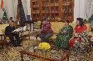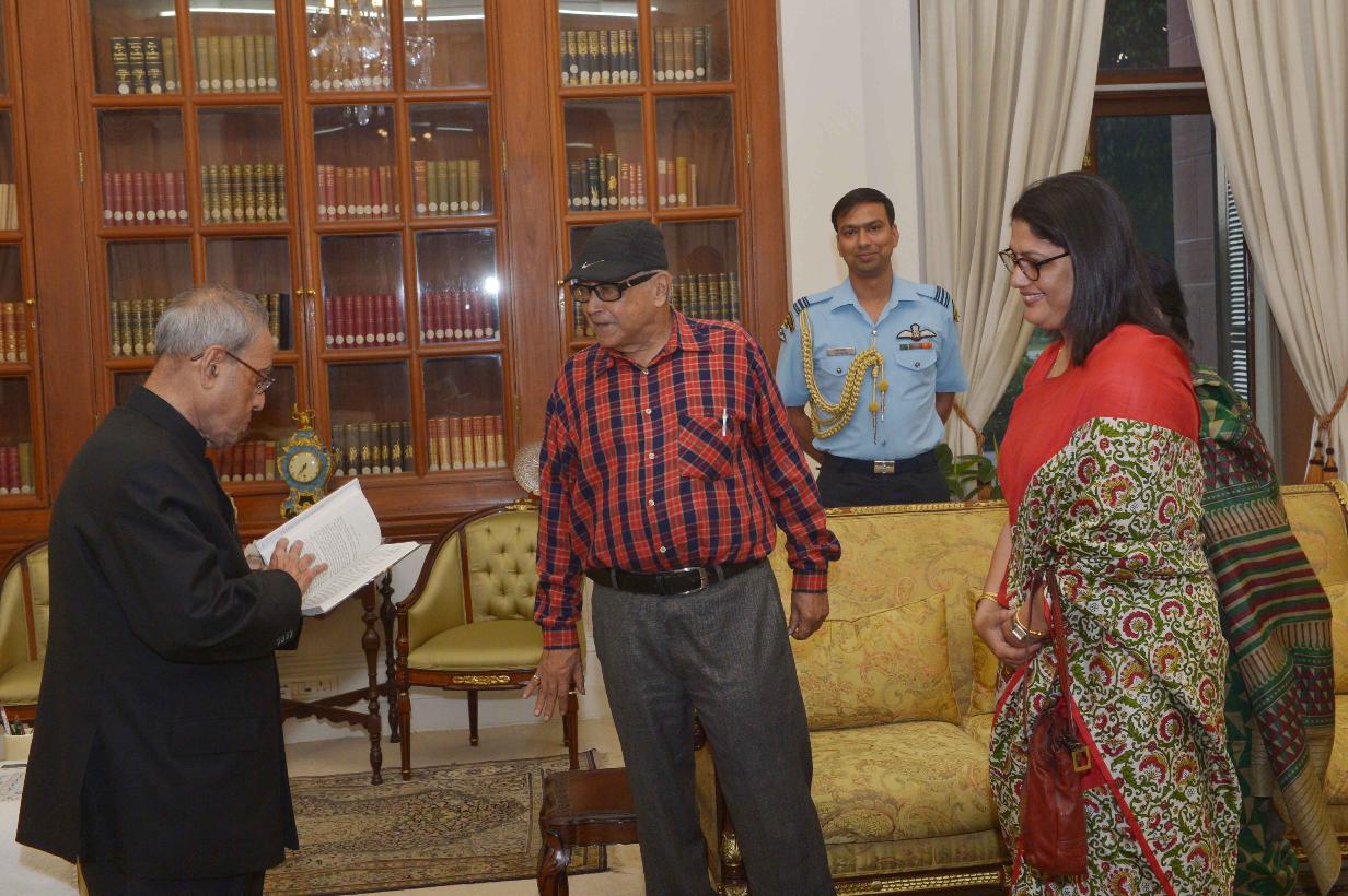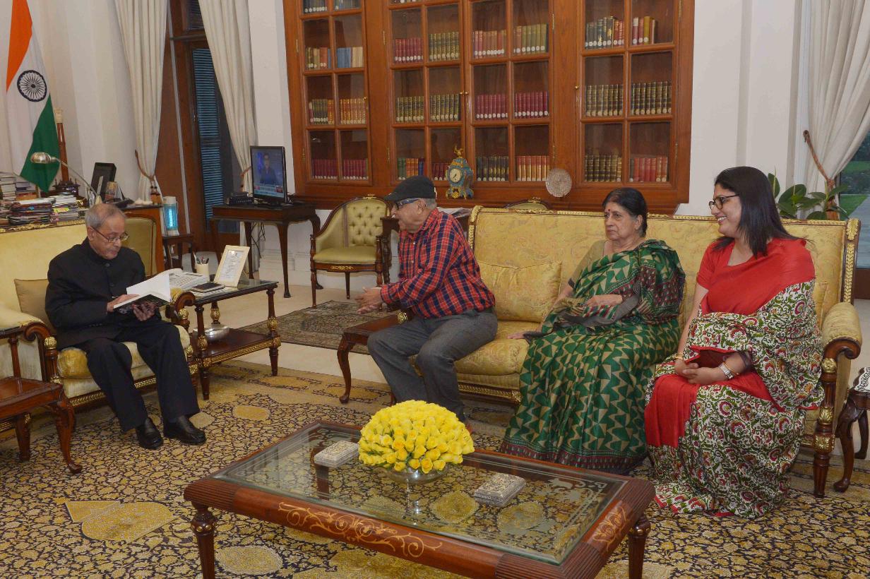 | Caption: | The President of India, Shri Pranab Mukherjee meeting with Prof. Partha Chatterjee, Author, Journalist & Senior Special Correspondent, Anandabazar Patrika alongwith his wife Smt. M. Chatterjee and daughter-in-law Smt. G. Chatterjee, at Rashtrapati Bhavan on April 08, 2016. |