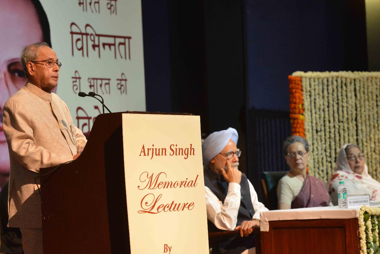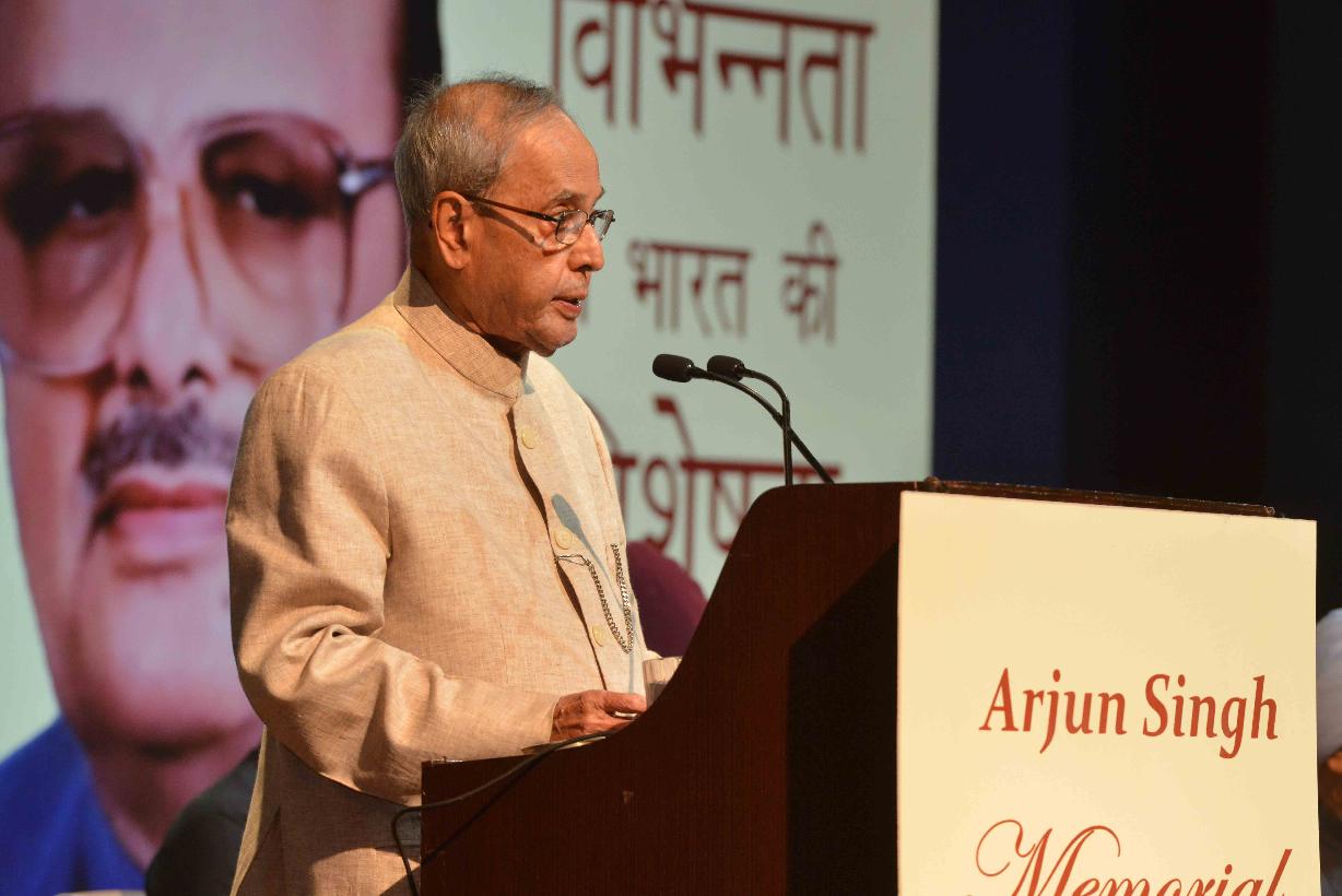 | Caption: | The President of India, Shri Pranab Mukherjee delivering the Memorial Lecture in honour of Late Shri Arjun Singh, Former Union Minister, organized by the Arjun Singh Sadbhavna Foundation, in New Delhi on April 09, 2016. |