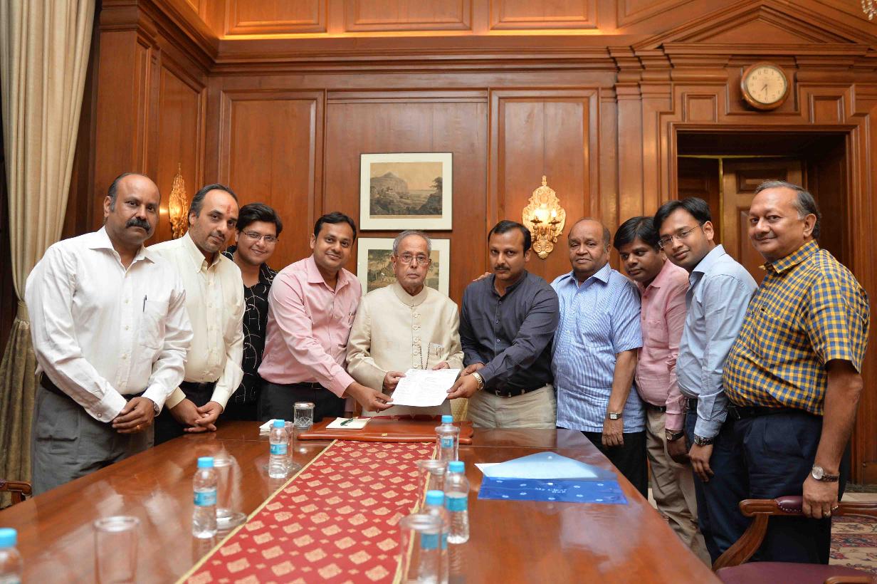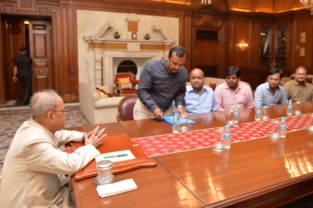 | Caption: | The President of India, Shri Pranab Mukherjee meeting with Shri Nirmal Kumar Jain, Chairman with other office bearers from Dariba Jwellers Association, Delhi, at Rashtrapati Bhavan on April 12, 2016. |