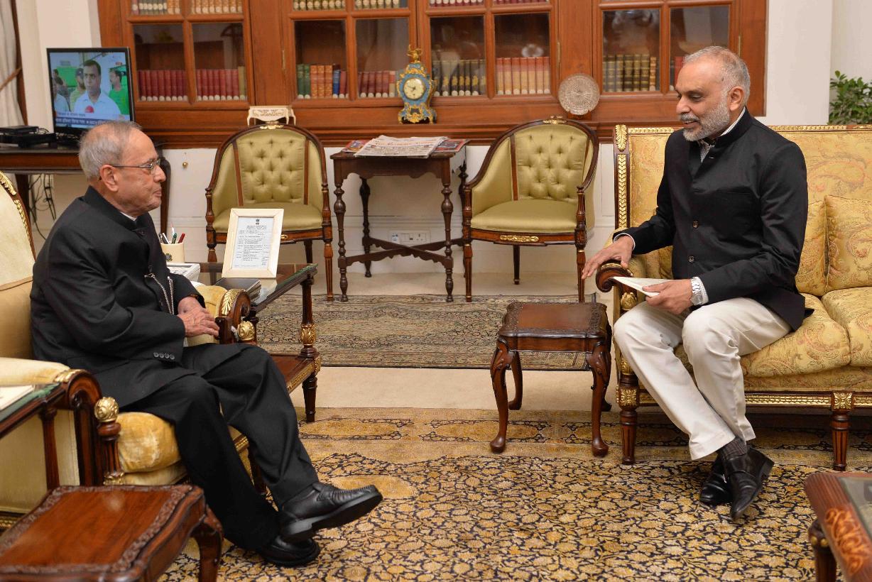 | Caption: | The President of India, Shri Pranab Mukherjee meeting with Shri Hari Bhartia, Co-Chairman & Founder, Jubilant Bhartia Group, at Rashtrapati Bhavan on April 20, 2016. |