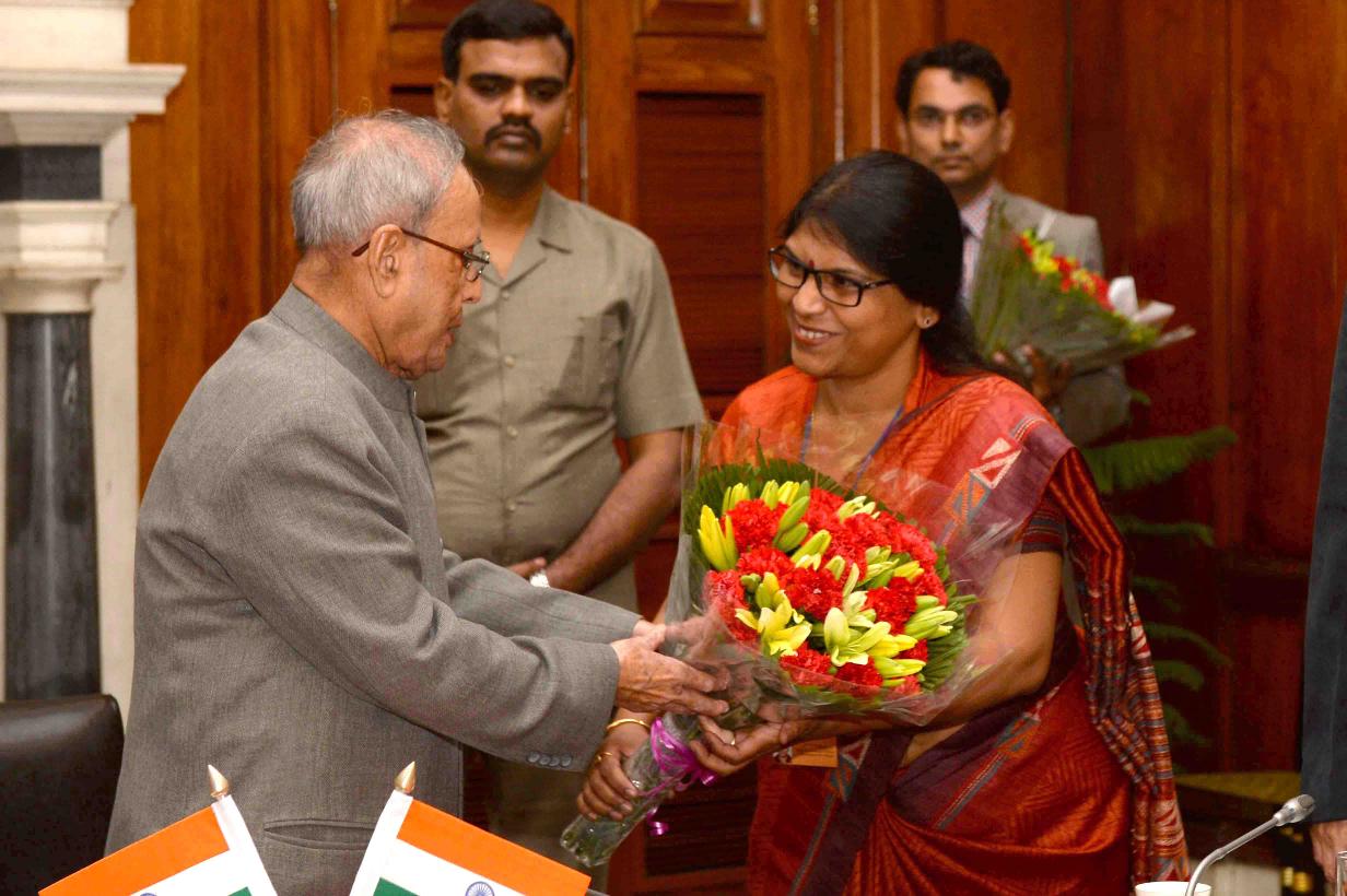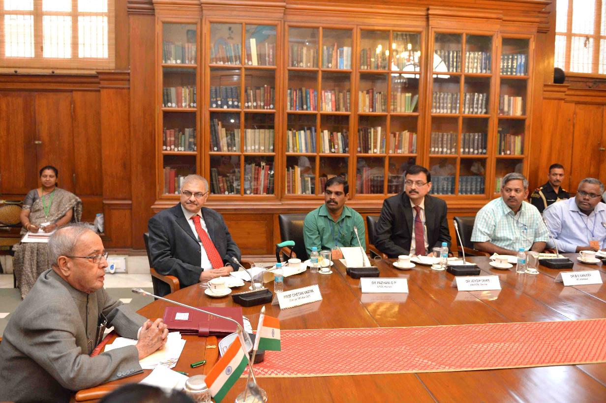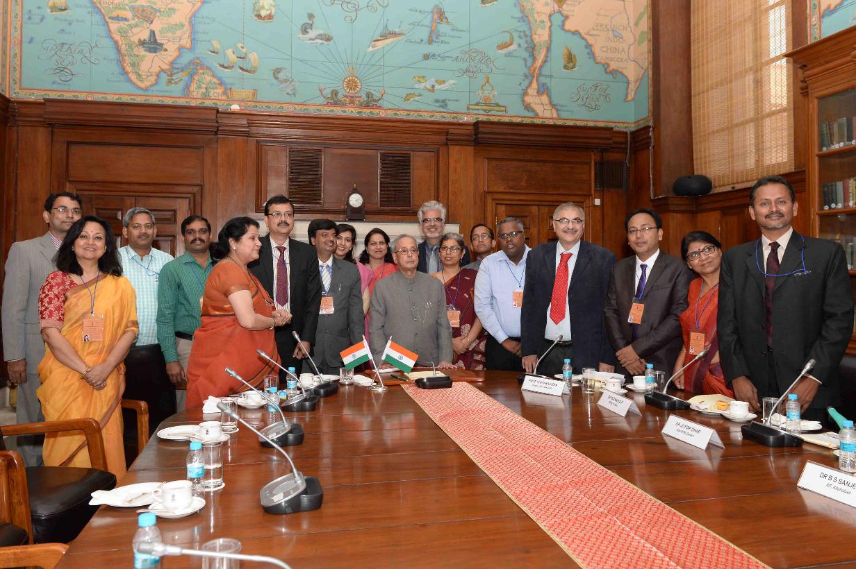 | Caption: | The President of India, Shri Pranab Mukherjee meeting with the 13th Inspired Teachers attending In-Residence Programme for Inspired Teachers from Central Universities, at Rashtrapati Bhavan on April 26, 2016. |