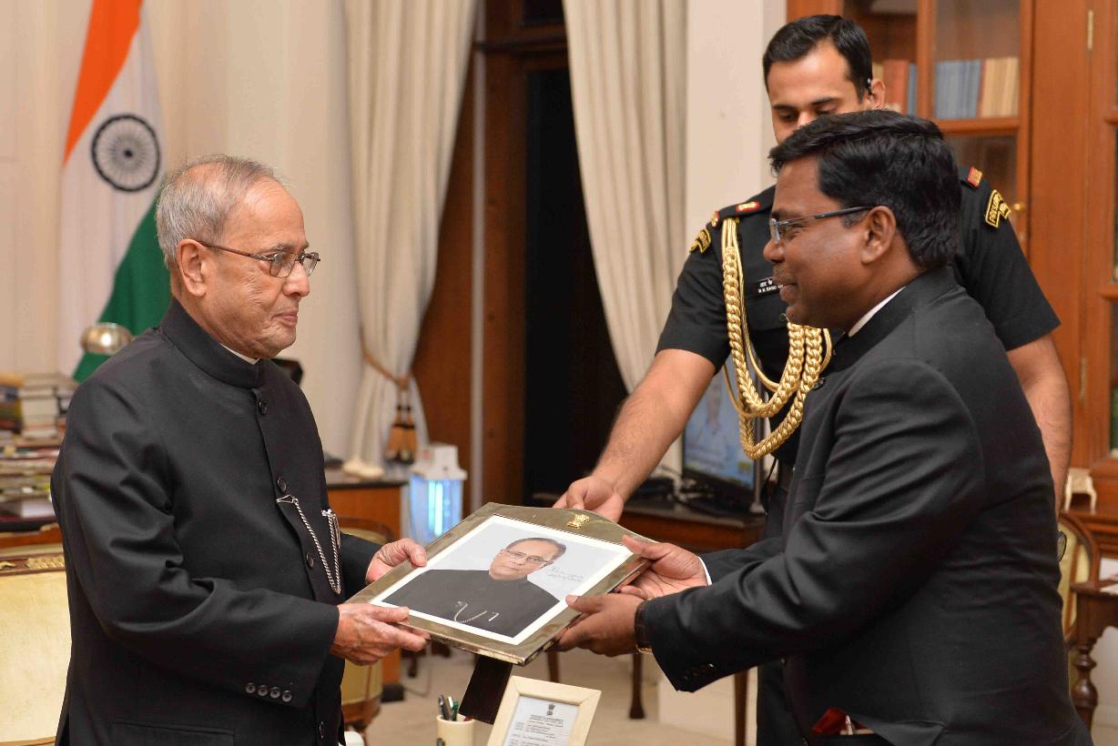 | Caption: | The President of India, Shri Pranab Mukherjee meeting with Shri Vishvas Sapkal, High Commissioner-designate of India to Fiji, at Rashtrapati Bhavan on April 20, 2016. |