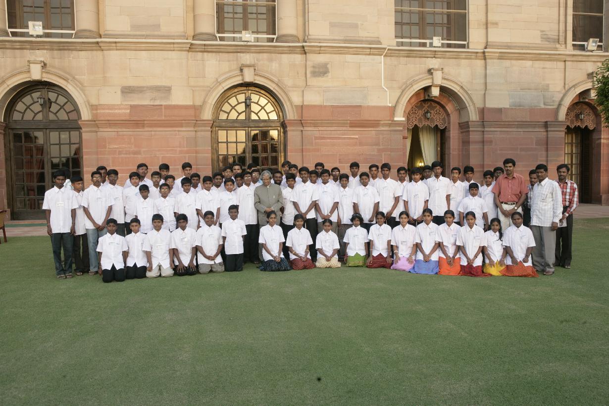 | Caption: | The Students from Kongu Matriculation Higher Secondary School, Uthukuli, Erode calling on the President of India, Dr A P J Abdul Kalam at the Yellow Drawing Room of Rashtrapati Bhavan in New Delhi on Sep 27, 2006 |