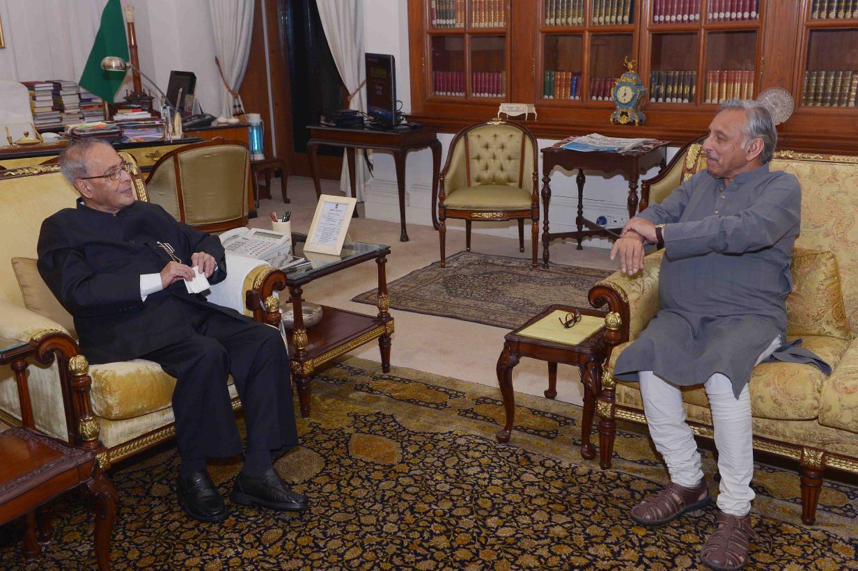 | Caption: | The President of India, Shri Pranab Mukherjee meeting with Shri Mani Shankar Aiyar, MP (RS), at Rashtrapati Bhavan on March 17, 2016. |