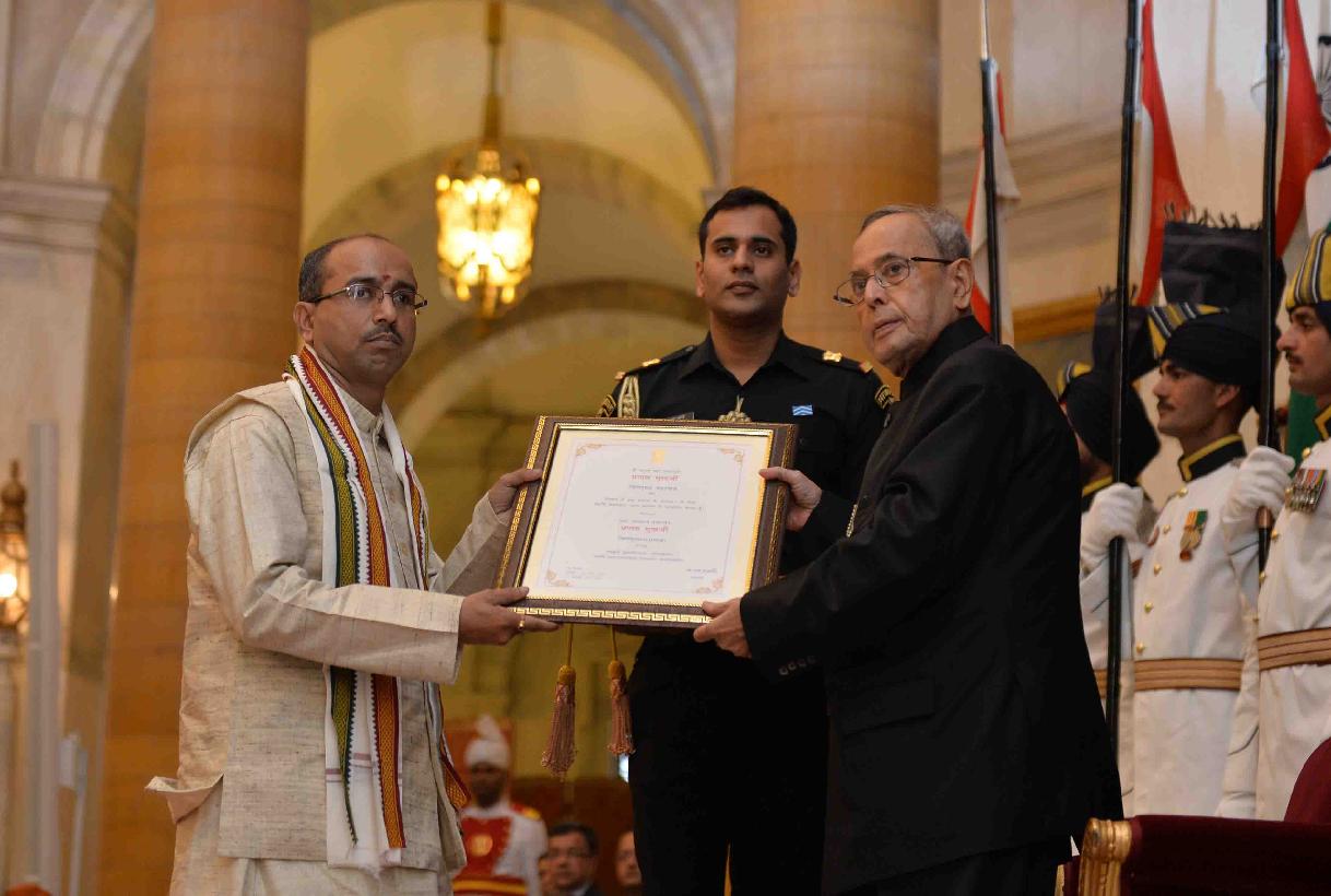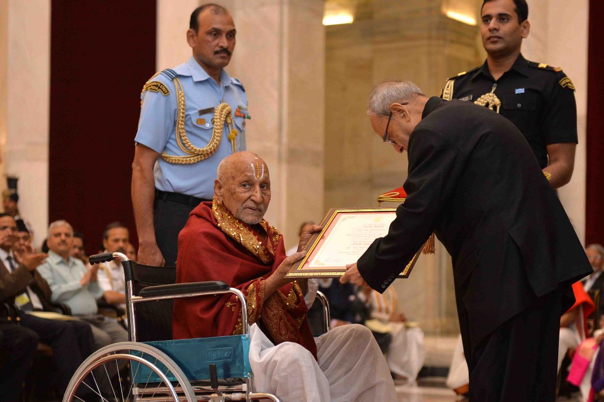 | Caption: | The President of India, Shri Pranab Mukherjee presenting the Presidential Award of Certificate of Honour to Eminent Scholars of Sanskrit, Pali/Prakrit, Arabic, Persian languages and Maharishi Badarayan Vyas Samman to Young Scholars for the Year 2015, at Rashtrapati Bhavan on March 11, 2016. |