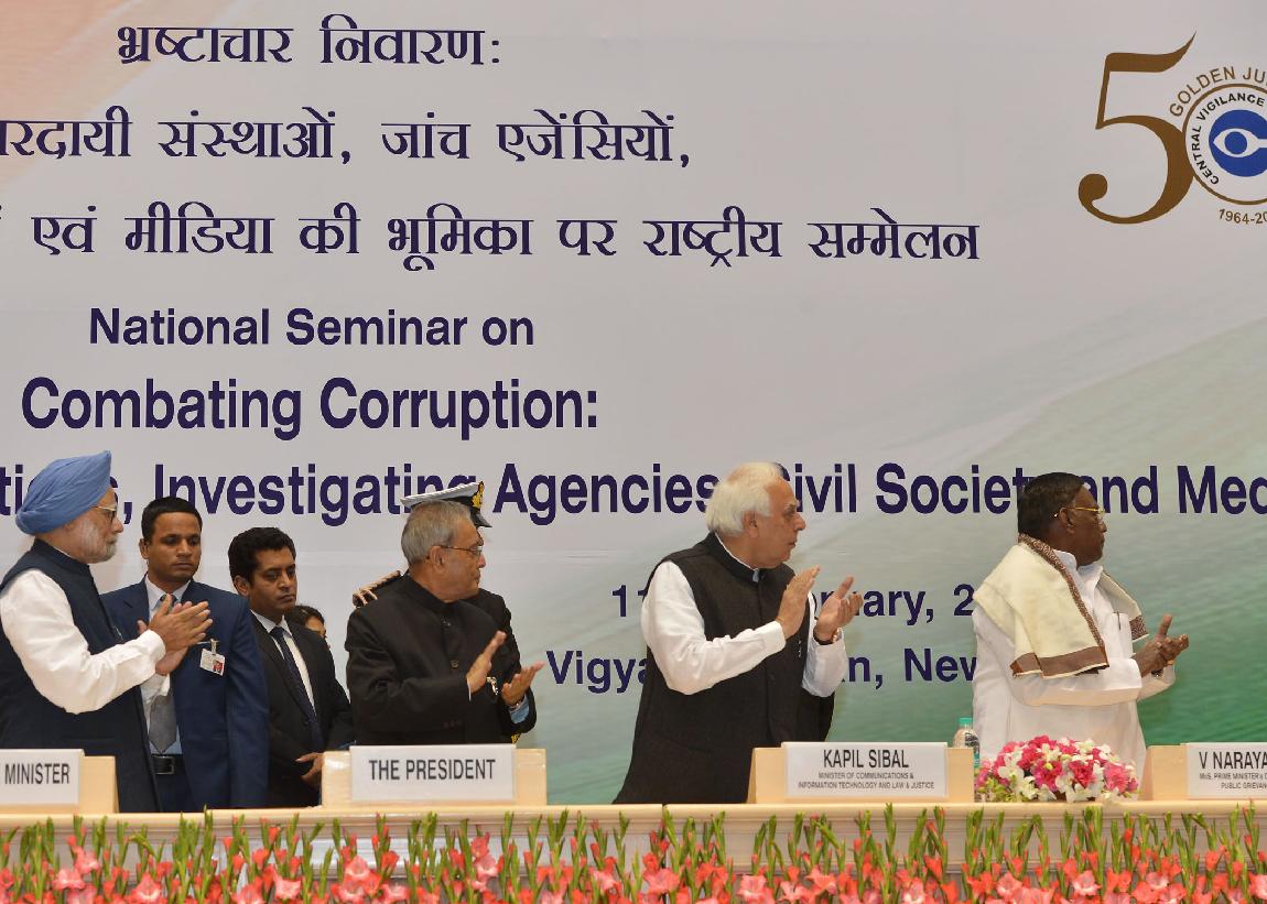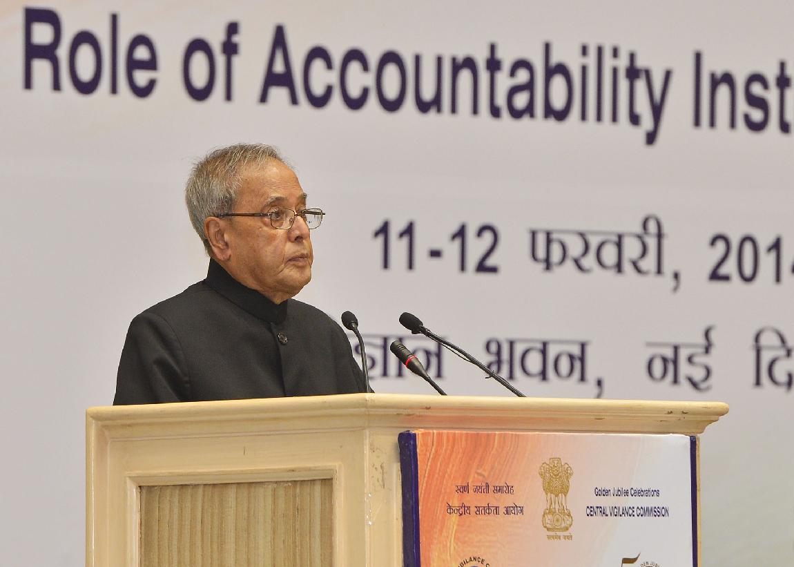 | Caption: | The President of India, Shri Pranab Mukherjee inaugurating the Seminar on Combating Corruption Role of Accountability Institutions, Investigating Agencies, Civil Society and Media on the occasion of the Golden Jubilee of the CVC at Vigyan Bhavan in New Delhi on Feb 11, 2014 |