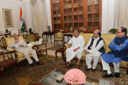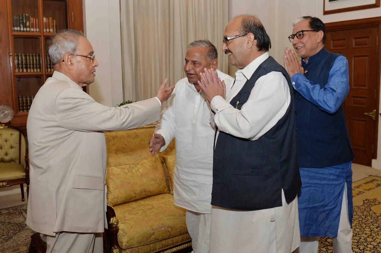| Caption: | The President of India, Shri Pranab Mukherjee meeting with Shri Amar Singh, Ex-MP (RS), Shri Mulayam Singh Yadav, MP (LS) and Dr. Subhash Chandra, Chairman, Zee and Essel Group, at Rashtrapati Bhavan on March 29, 2016. |