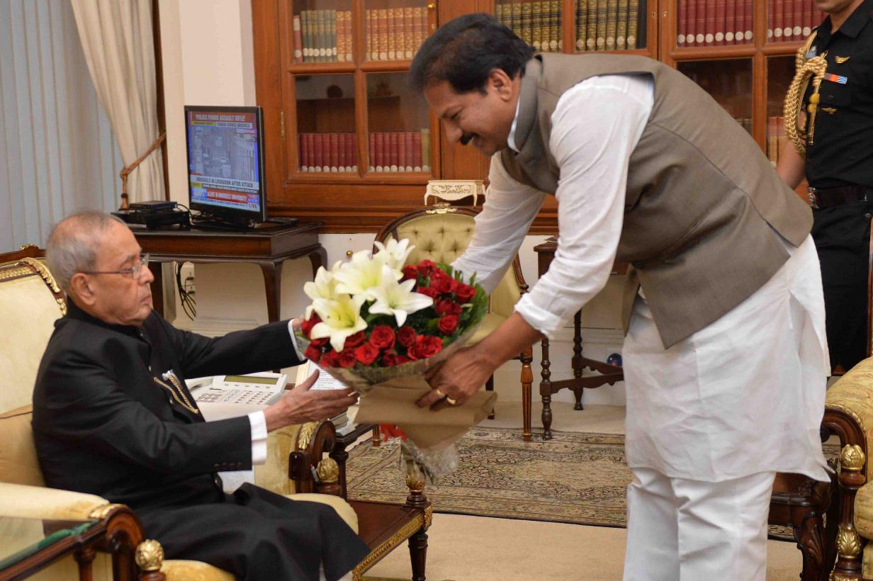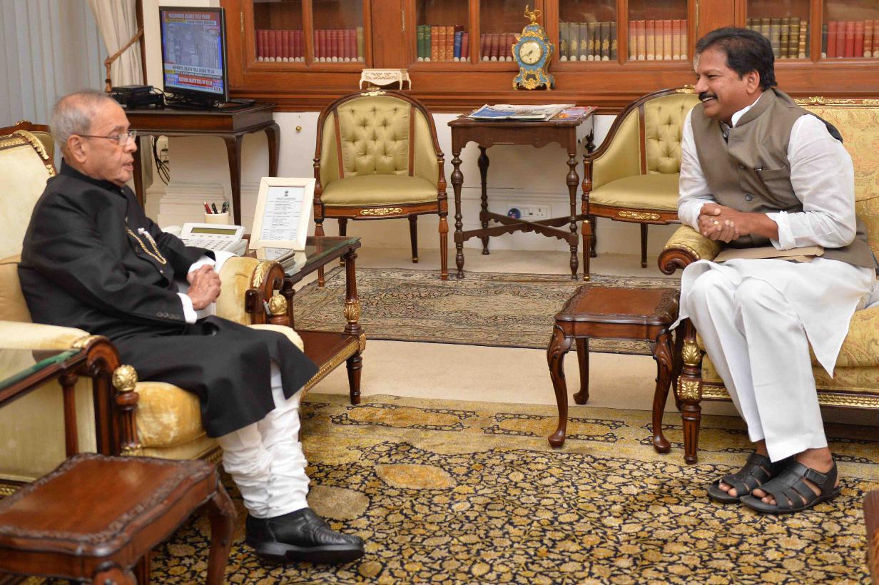 | Caption: | The President of India, Shri Pranab Mukherjee meeting with Shri Kona Raghupathi, MLA from Bapatla, Andhra Pradesh, at Rashtrapati Bhavan on March 22, 2016. |