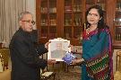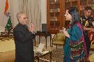 | Caption: | The President of India, Shri Pranab Mukherjee meeting with Ms. Shubhadarshini Tripathi, Ambassador-designate of India to Jordan, at Rashtrapati Bhavan on April 19, 2016. |
