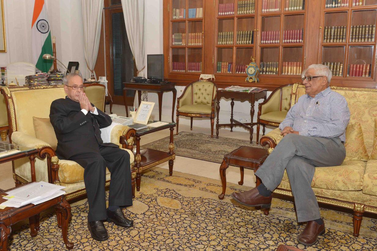 | Caption: | The President of India, Shri Pranab Mukherjee meeting with Shri H.K. Dua, Ex-MP (RS), at Rashtrapati Bhavan on April 19, 2016. |