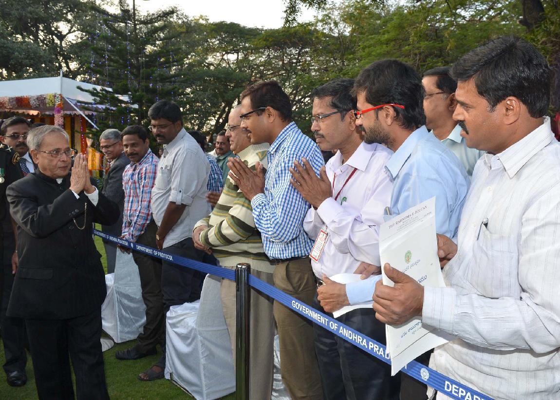 | Caption: | The President of India, Shri Pranab Mukherjee during the Reception hosted by him at Rashtrapati Nilayam, Bolarum, Secunderabad at Hyderabad in Andhra Pradesh on Dec 30, 2013 |