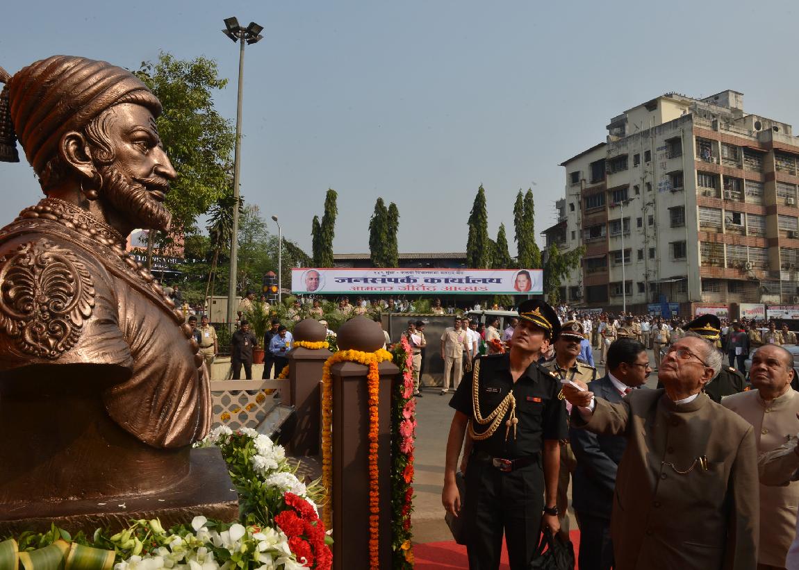 | Caption: | The President of India, Shri Pranab Mukherjee unveiling of the statue of Chhatrapati Shivaji Maharaj at Thane in Maharashtra on Dec 28, 2013 |