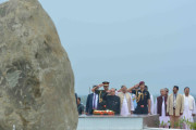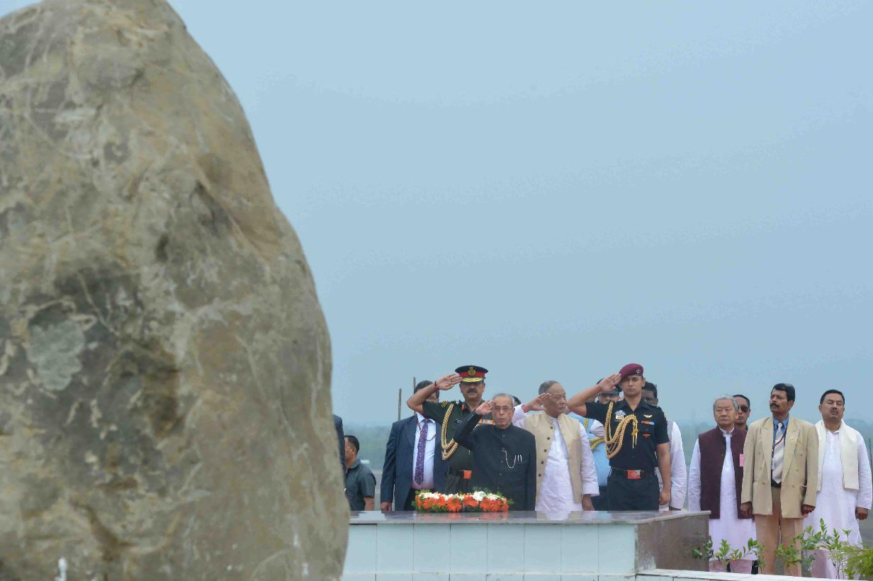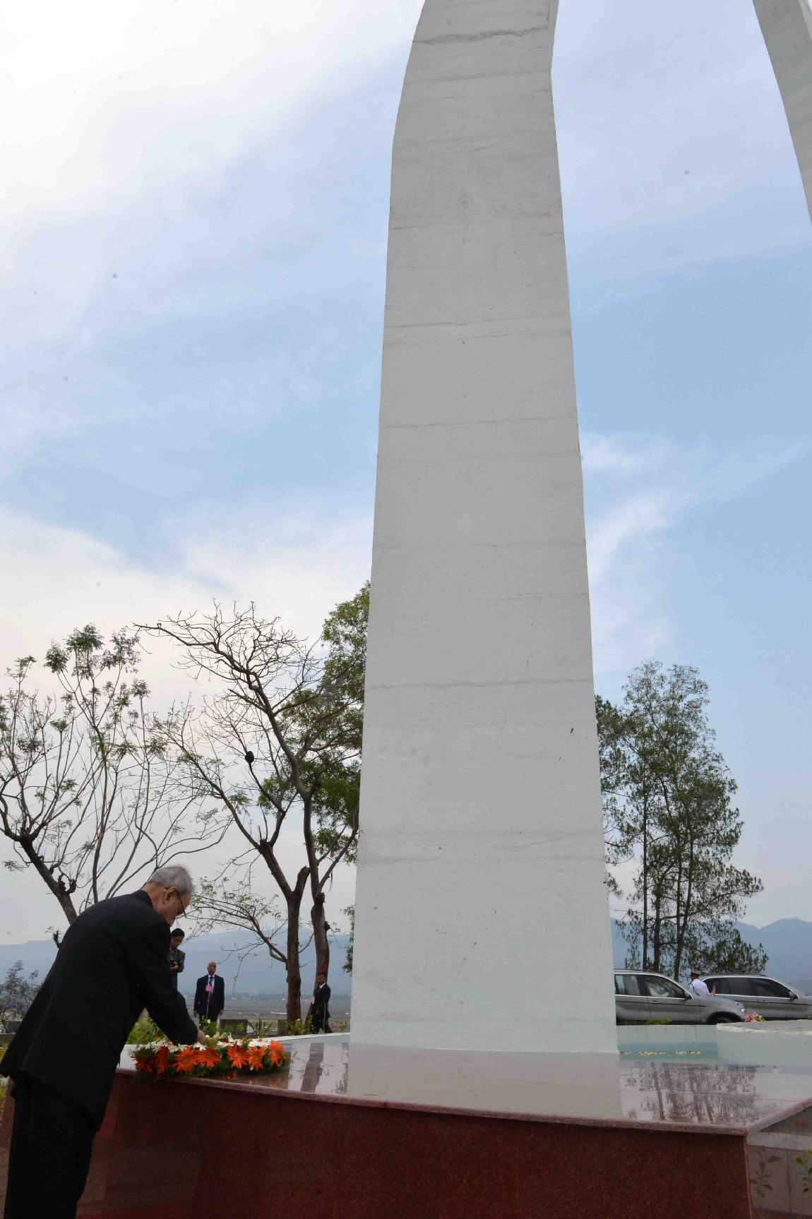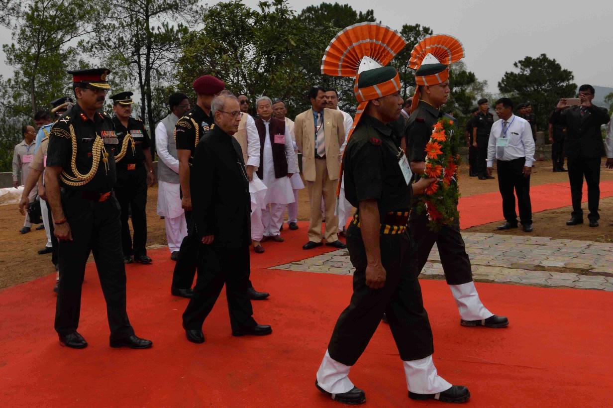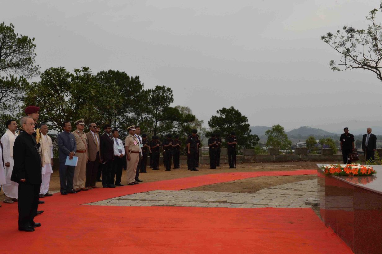 | Caption: | The President of India, Shri Pranab Mukherjee laying wreath at Khongjom War Monument, at Khongjom, in Manipur on April 23, 2016. |