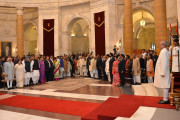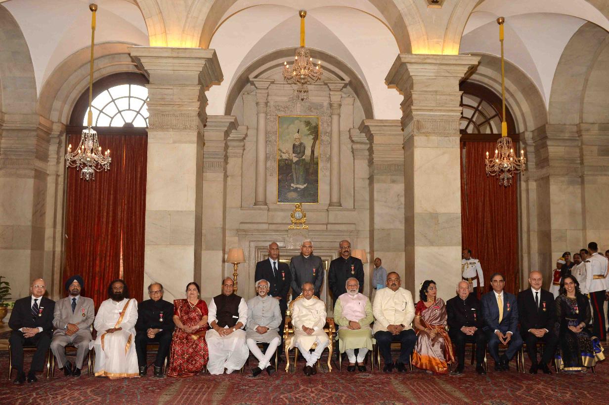 | Caption: | The President of India, Shri Pranab Mukherjee with the recipients of Padma Awards, at a Civil Investiture Ceremony, at Rashtrapati Bhavan on March 28, 2016. |