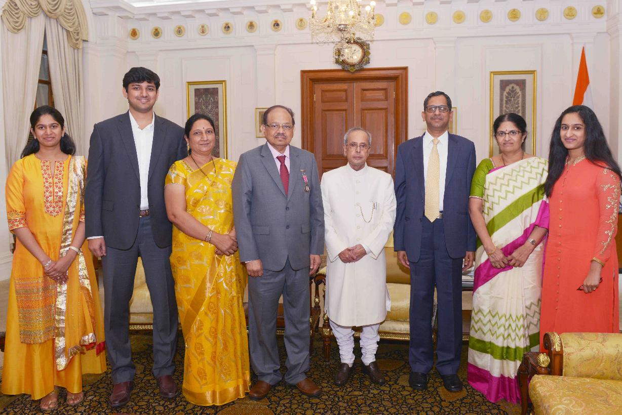 | Caption: | The President of India, Shri Pranab Mukherjee meeting with Shri Justice N.V. Ramana, Judge Supreme Court of India alongwith his family members, at Rashtrapati Bhavan on March 28, 2016. |
