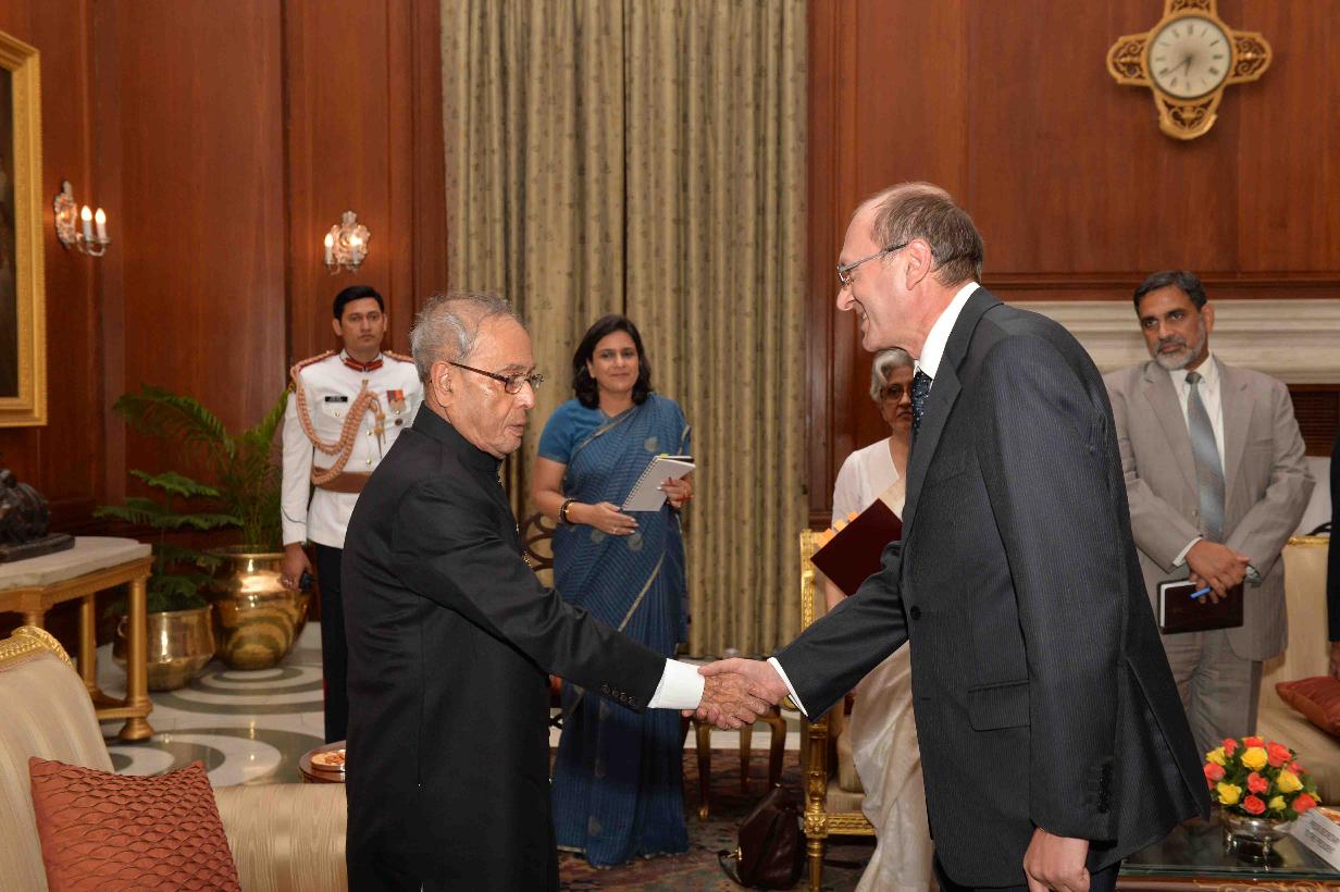 | Caption: | The Ambassador-designate of Ukraine, H.E. Mr. Igor Polikha presenting his Credentials to the President of India, Shri Pranab Mukherjee, at Rashtrapati Bhavan on April 04, 2016. |