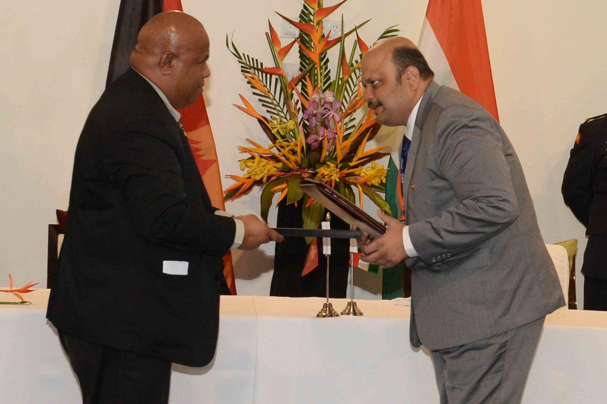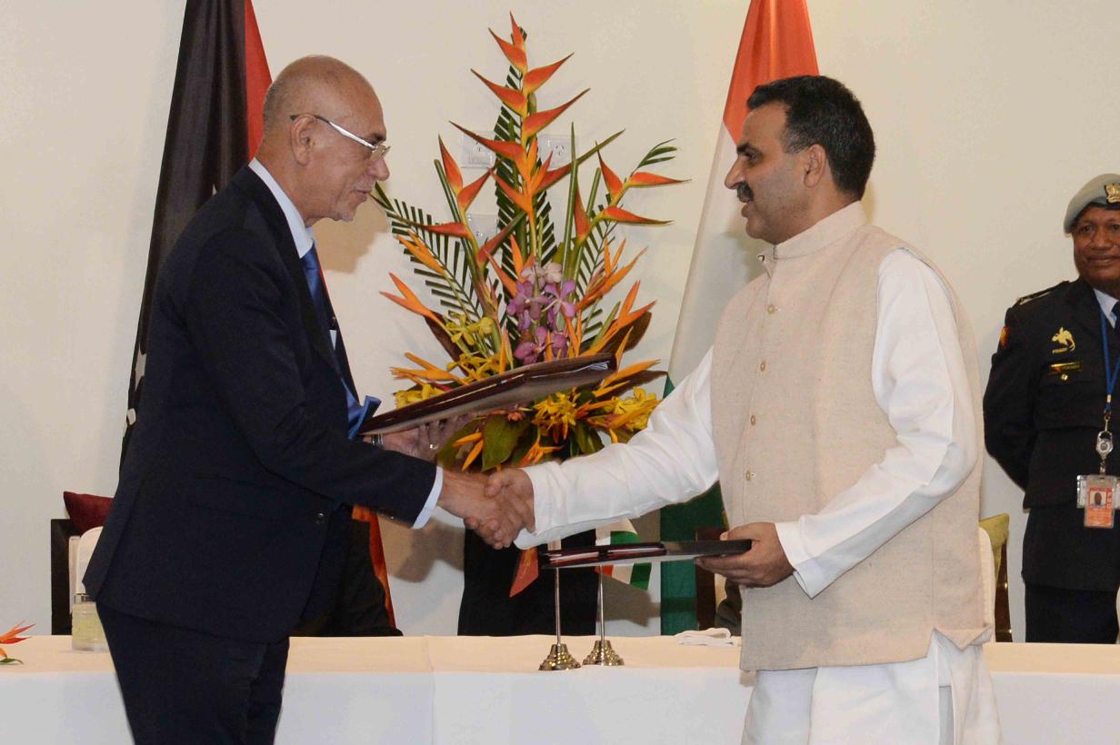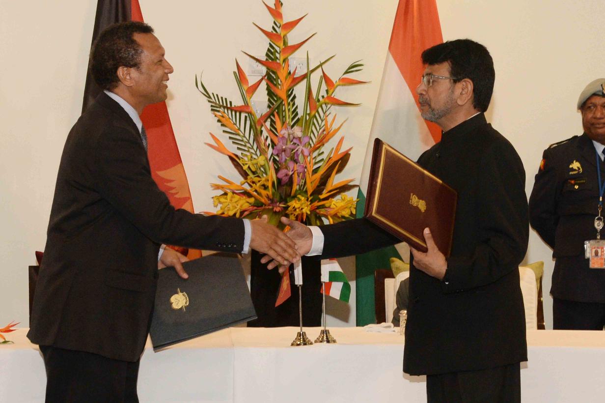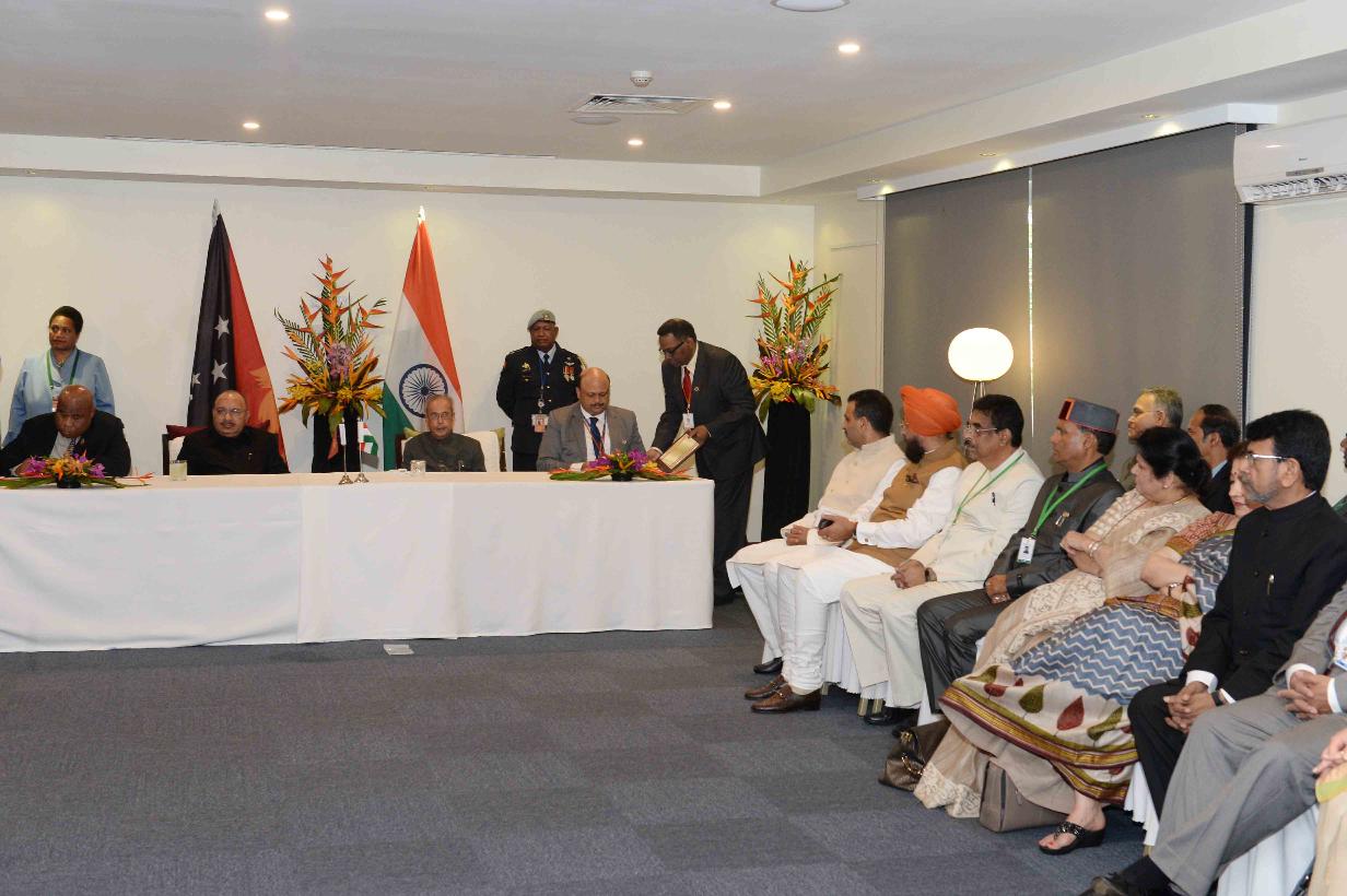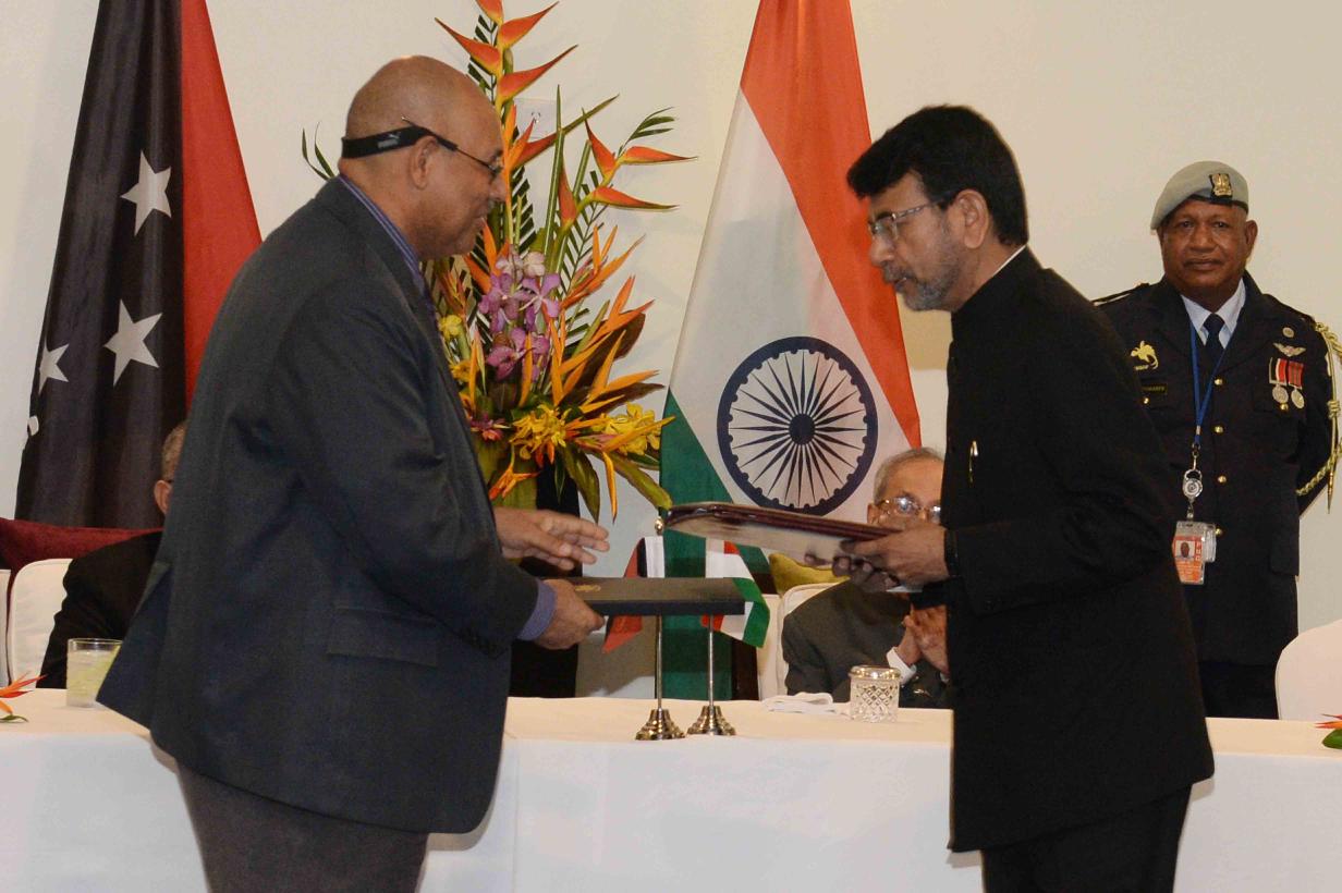 | Caption: | The President of India, Shri Pranab Mukherjee and the Prime Minister of Papua New Guinea, Hon. Mr. Peter O Neill witnessing the various Signing of Agreements/MOUs between India and Papua New Guinea, at Port Moresby, in Papua New Guinea on April 29, 2016. |