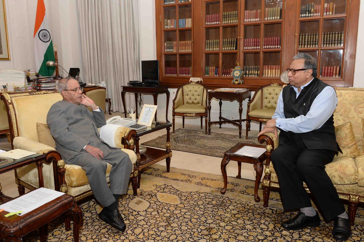 | Caption: | The President of India, Shri Pranab Mukherjee meeting with Shri Jawhar Sircar, Chief Executive Officer, Prasar Bharati, at Rashtrapati Bhavan on May 09, 2016. |