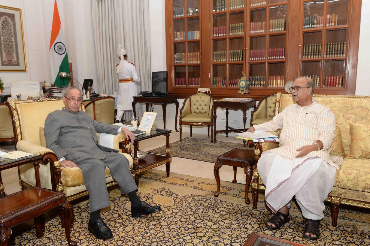 | Caption: | The President of India, Shri Pranab Mukherjee meeting with Shri Pradip Bhattacharya, MP (RS), at Rashtrapati Bhavan on May 09, 2016. |