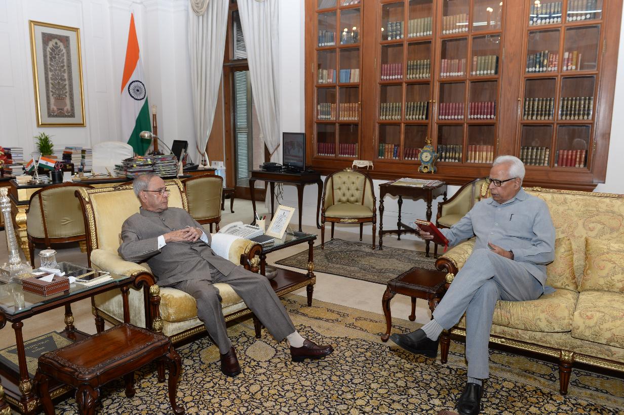 | Caption: | The Governor of Jammu & Kashmir, Shri N.N. Vohra calling on the President of India, Shri Pranab Mukherjee, at Rashtrapati Bhavan on May 04, 2016. |