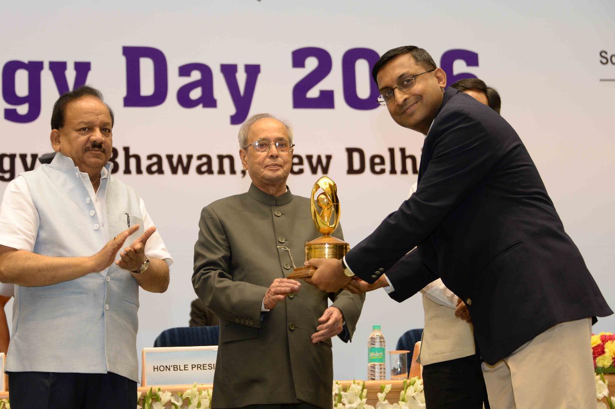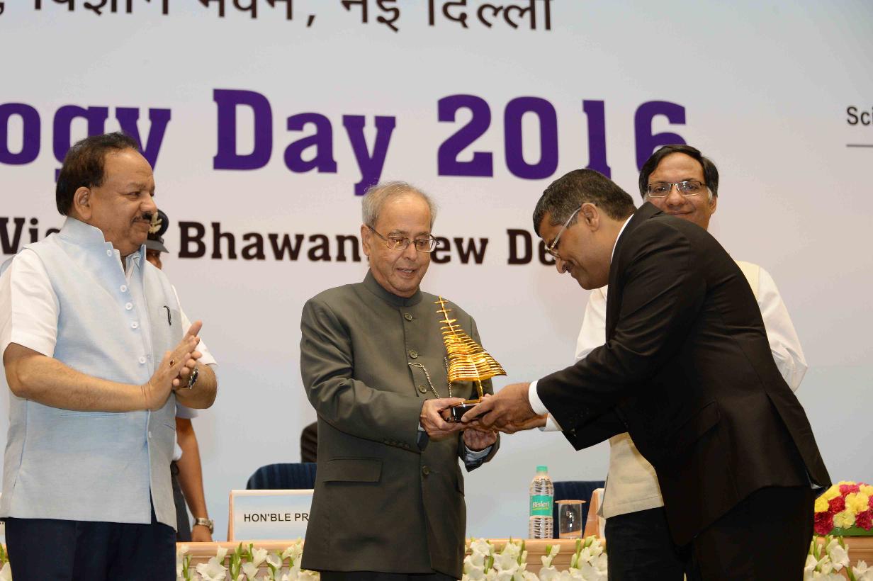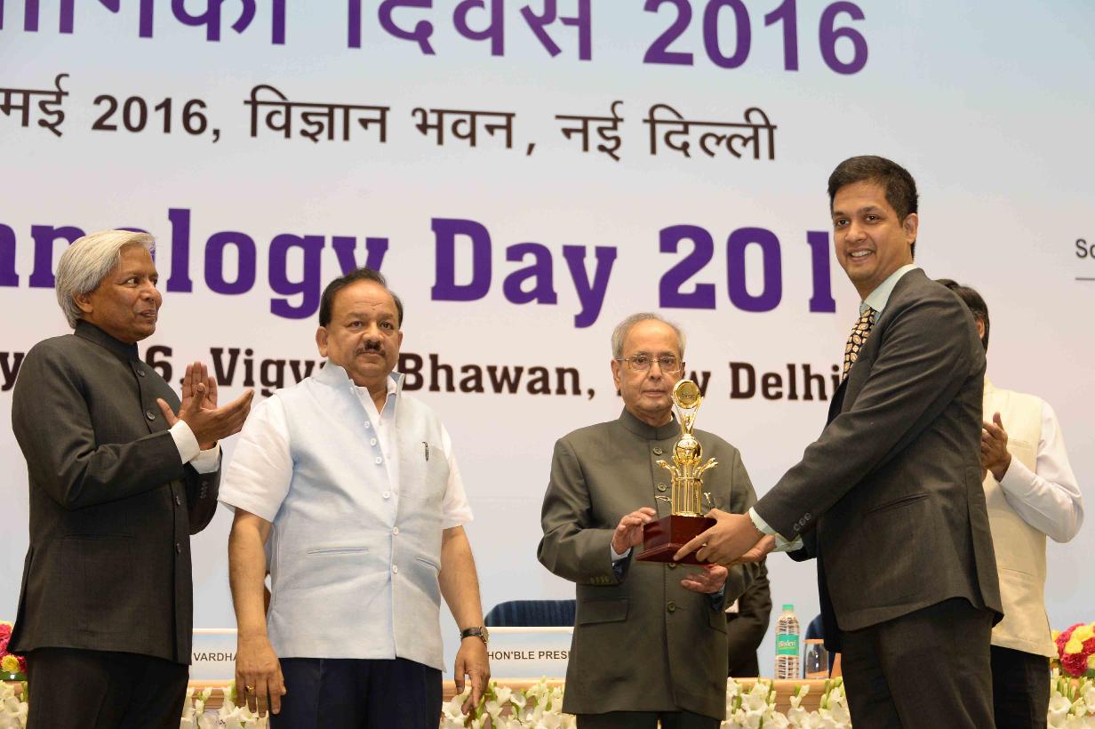 | Caption: | The President of India, Shri Pranab Mukherjee presenting the National Awards on Technology, at the National Technology Day celebrations, in New Delhi on May 11, 2016. |