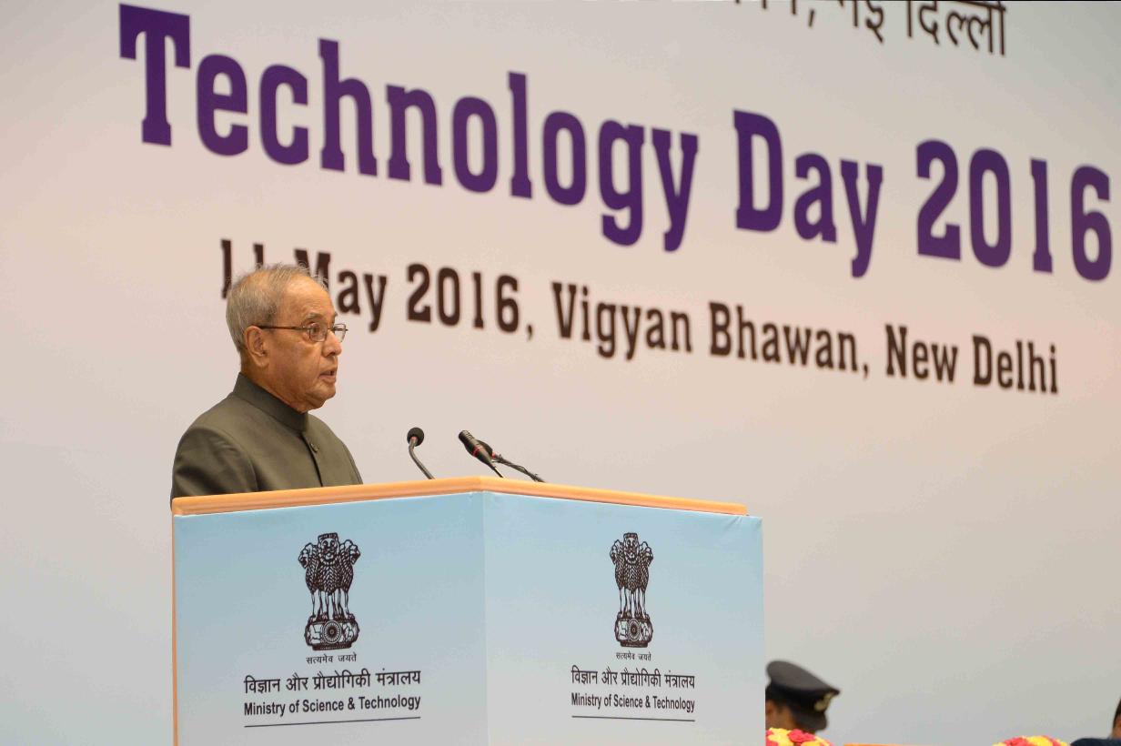 | Caption: | The President of India, Shri Pranab Mukherjee at the National Technology Day celebrations, organized by the Ministry of Science and Technology and Earth Science, at Vigyan Bhavan, in New Delhi on May 11, 2016. |