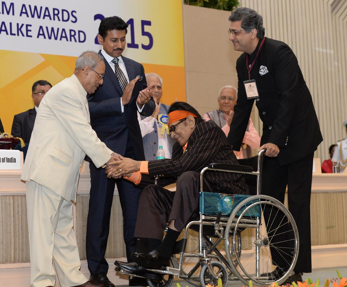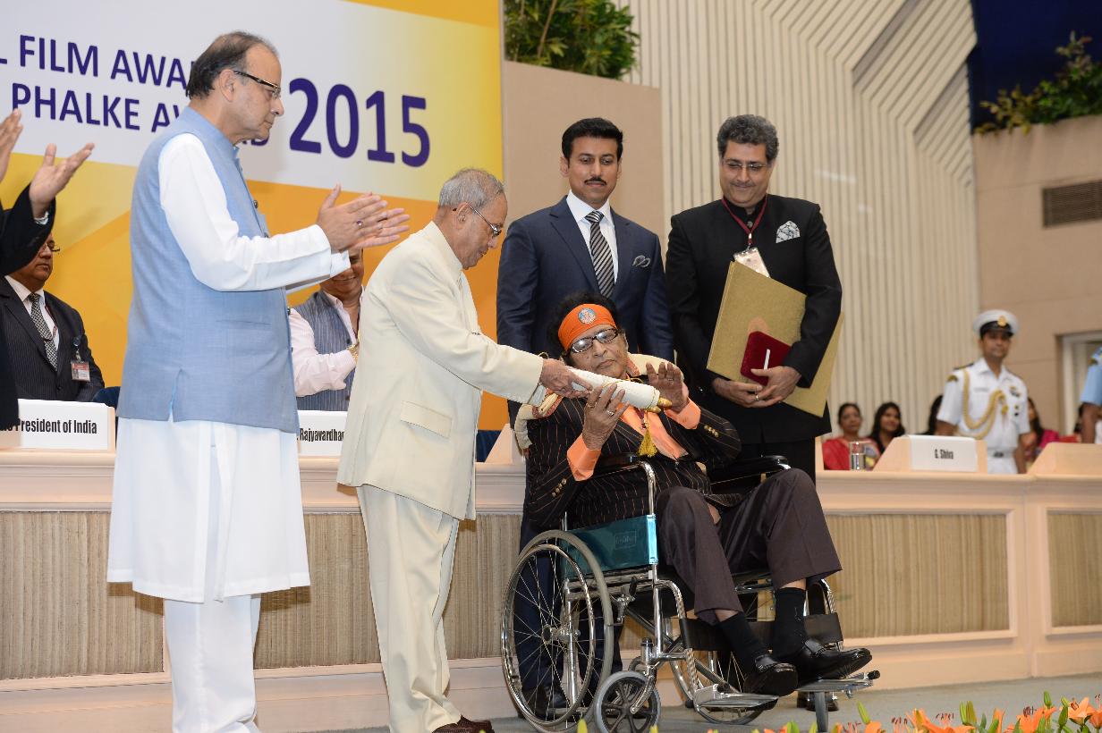 | Caption: | The President of India, Shri Pranab Mukherjee presenting the Dada Saheb Phalke Award to Actor Shri Manoj Kumar, at the 63rd National Film Awards Function, in New Delhi on May 03, 2016. |