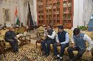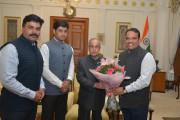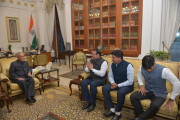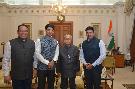 | Caption: | The President of India, Shri Pranab Mukherjee meeting with the Members of Parliament (Lok Sabha), Shri Shrirang Appa Barne, Shri Rahul Shewale and Dr. Shrikant Shinde, at Rashtrapati Bhavan on May 05, 2016. |