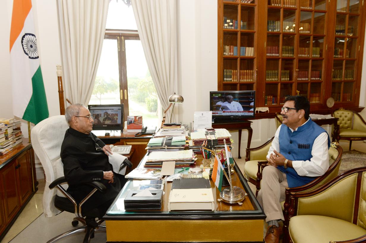 | Caption: | The President of India, Shri Pranab Mukherjee meeting with Shri Shashi Shekhar, Editor-in-Chief, Hindustan, at Rashtrapati Bhavan on May 06, 2016. |