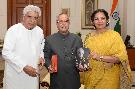 | Caption: | The President of India, Shri Pranab Mukherjee meeting with Shri Javed Akhtar, Ex-MP (RS) and Smt. Shabana Azmi, at Rashtrapati Bhavan on May 18, 2016. |