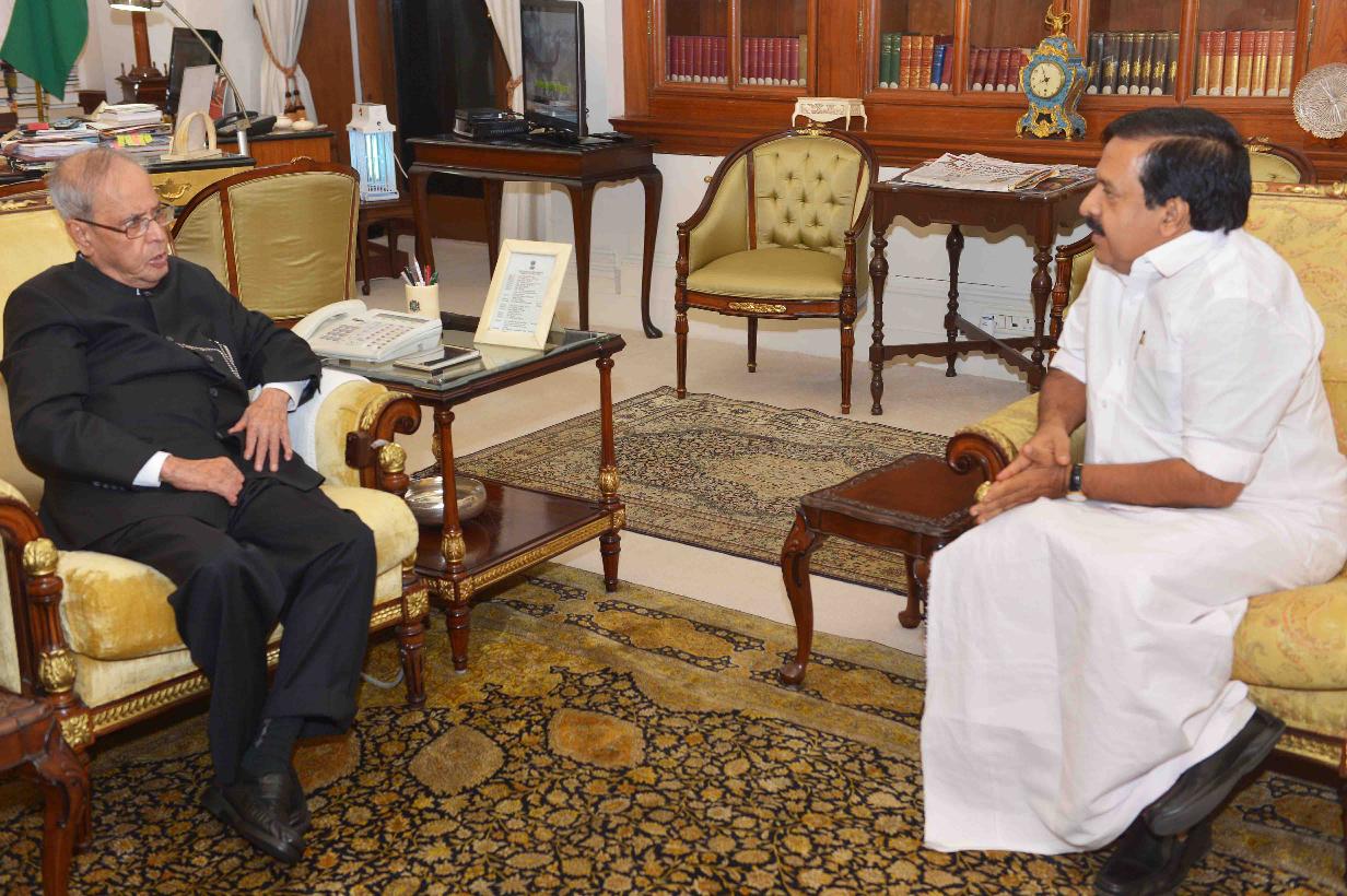 | Caption: | The President of India, Shri Pranab Mukherjee meeting with Shri Ramesh Chennithala, MLA, Kerala, at Rashtrapati Bhavan on May 31, 2016. |