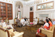 | Caption: | The President of India, Shri Pranab Mukherjee meeting with Shri Nitin Gadkari, Minister of Road Transport, Highways & Shipping along with a delegation of BJP leaders, at Rashtrapati Bhavan on May 22, 2016. |