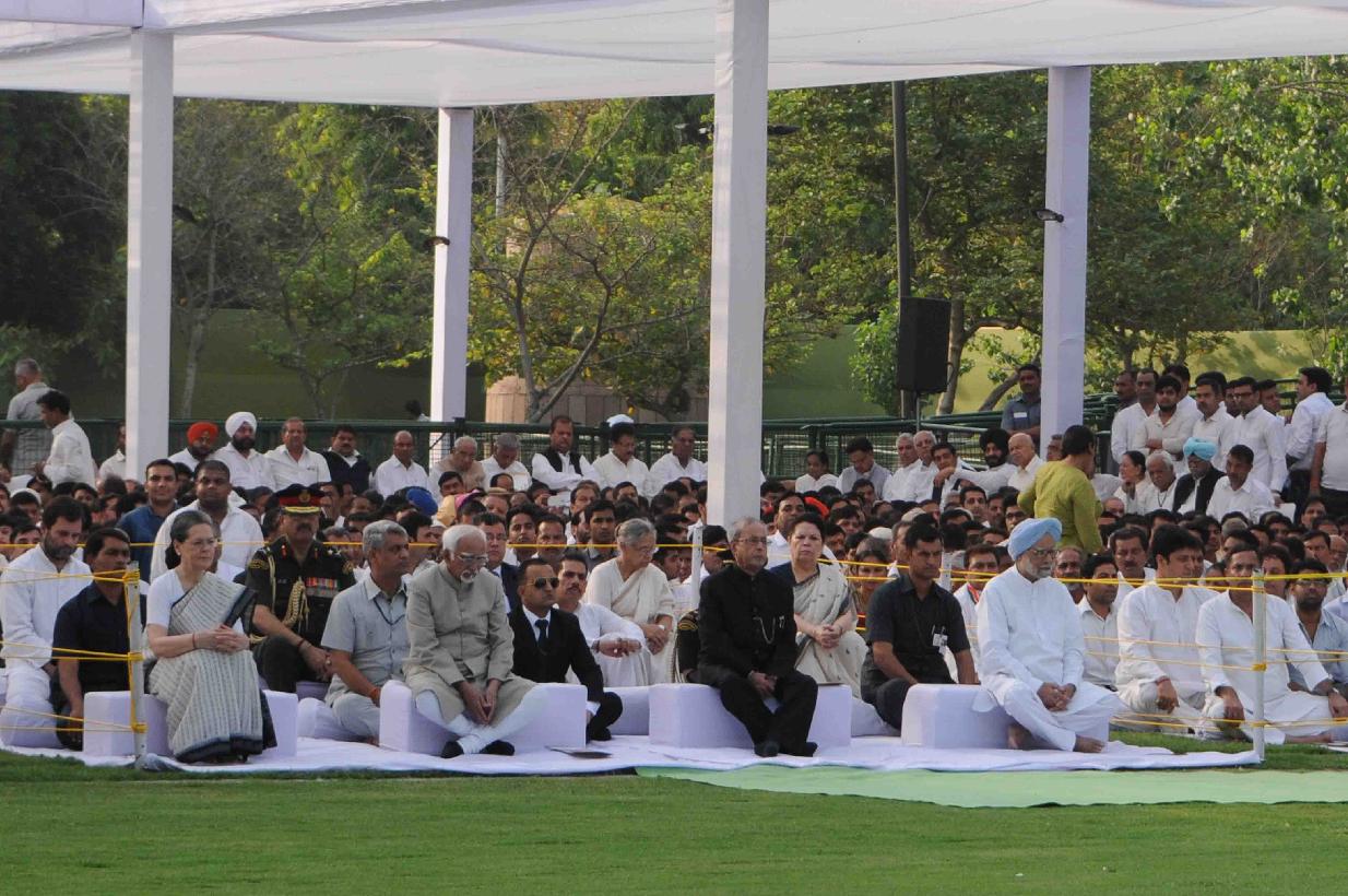 | Caption: | The President of India, Shri Pranab Mukherjee paying homage to late Shri Rajiv Gandhi, former Prime Minister of India on the occasion of his 25th Death Anniversary, at Vir Bhumi, in Delhi on May 21, 2016. |