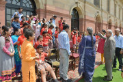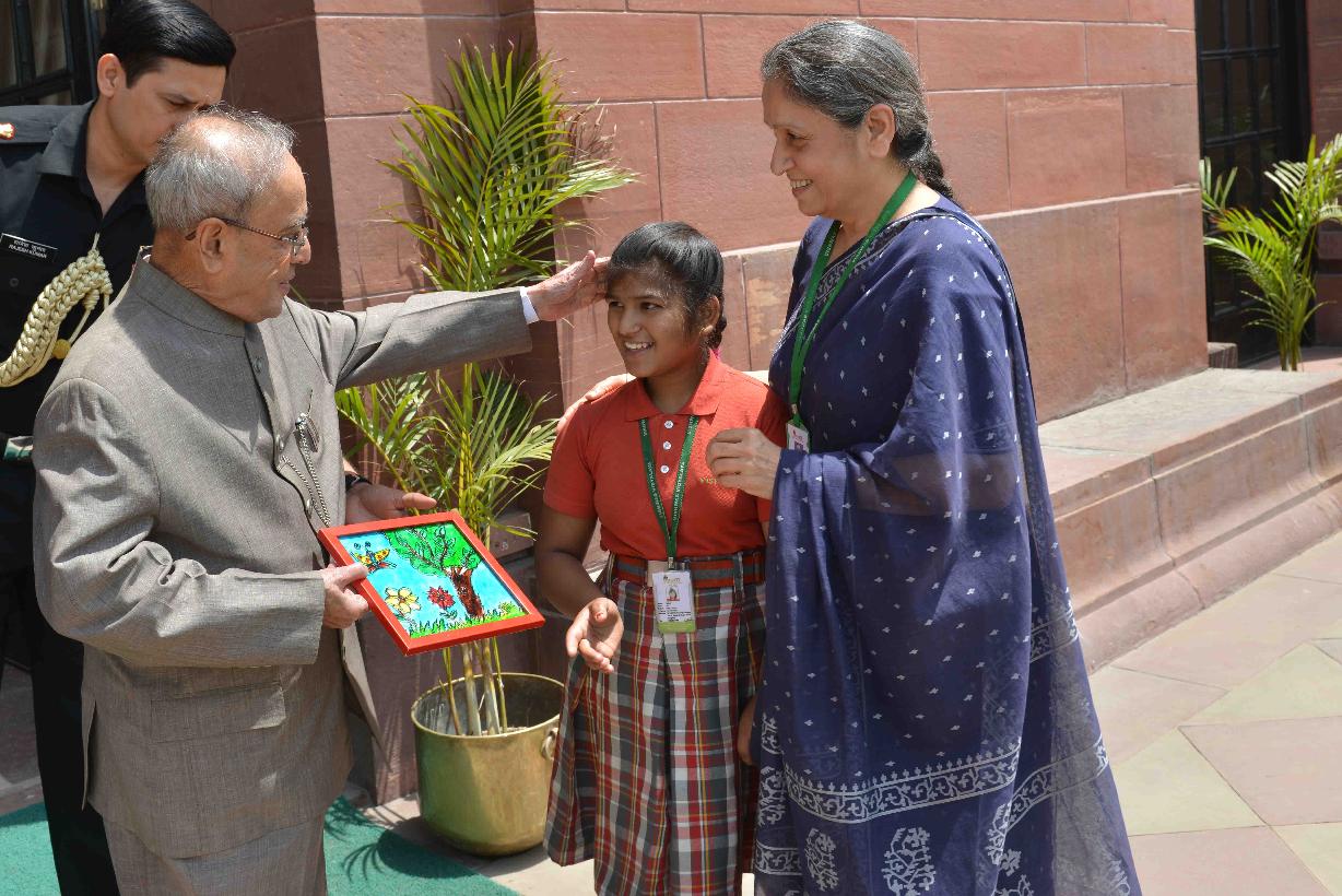 | Caption: | The President of India, Shri Pranab Mukherjee meeting with students of Vishwas Vidyalaya, Gurgaon, at Rashtrapati Bhavan on April 22, 2016. |