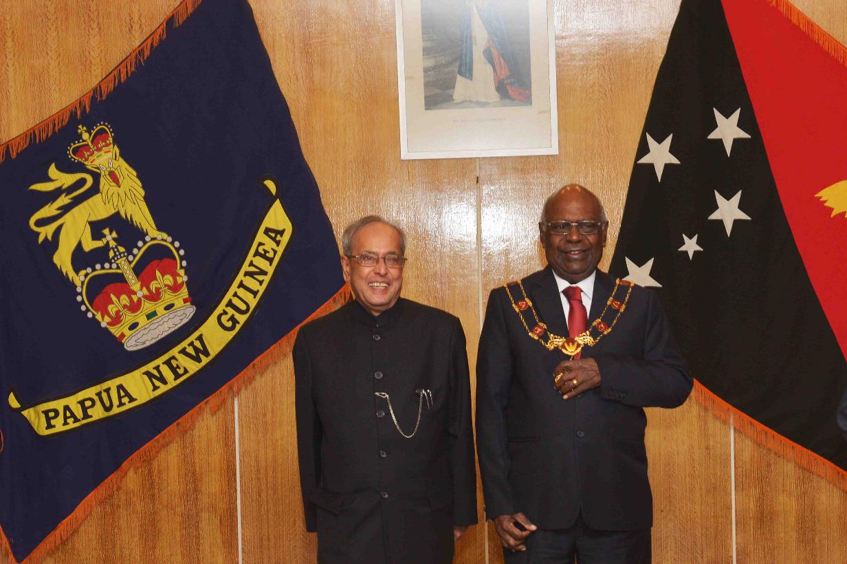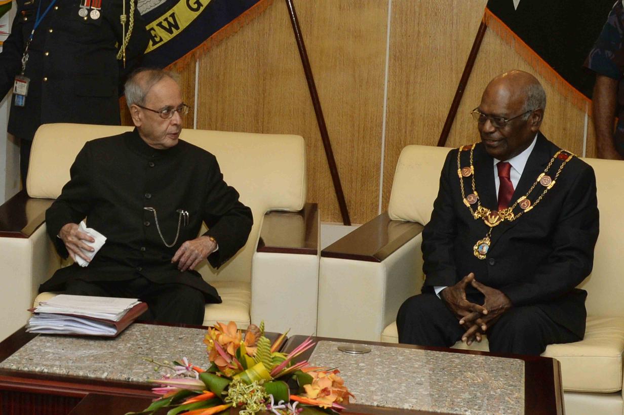 | Caption: | The President of India, Shri Pranab Mukherjee meeting with the Governor General of Papua New Guinea, H.E. Grand Chief Sir Michael Ogio, GCL, GCMG, KSt. J., at Government House, Port Moresby in Papua New Guinea on April 28, 2016 |